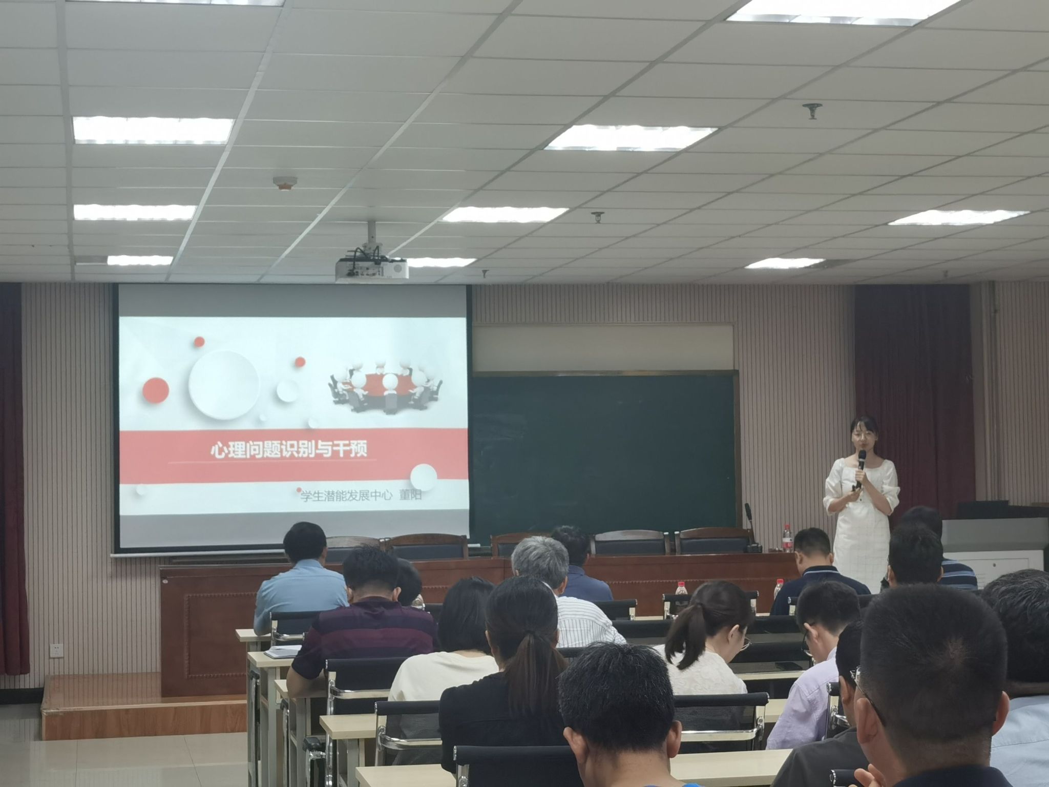 會議第一階段,學(xué)生潛能發(fā)展中心董陽老師應(yīng)邀作了《研究生心理健康問題識別與危機干預(yù)》主題報告。報告圍繞研究生心理健康現(xiàn)狀、研究生心理特點及原因分析、心理危機及心理問題識別等方面進行闡述,結(jié)合典型案例對研究生常見的心理問題來源及應(yīng)對措施進行了分析,指出導(dǎo)師應(yīng)及時關(guān)注研究生的情緒,加強師生之間的溝通并給予合理引導(dǎo)和心理支持,幫助研究生順利完成學(xué)業(yè)。