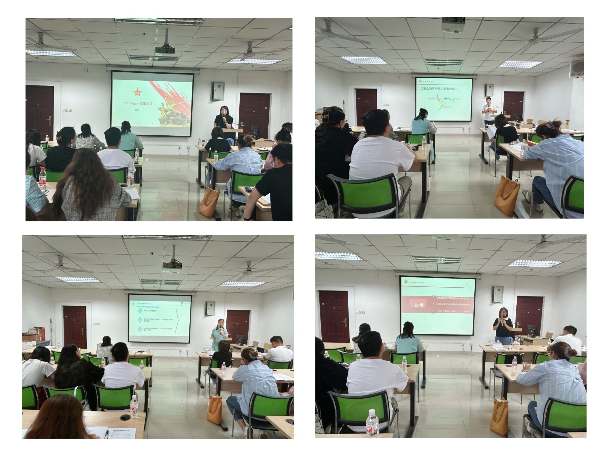 武裝部征兵專項工作教師曲江月從大學(xué)生參軍入伍的意義與價值、條件標準和應(yīng)征流程、參軍入伍政策、區(qū)域政策優(yōu)勢及學(xué)生常見問題等五個方面,做了畢業(yè)生應(yīng)征入伍政策解讀。機電工程學(xué)院(智能制造與機器人工程學(xué)院)輔導(dǎo)員王斌結(jié)合自身就業(yè)市場開拓工作經(jīng)歷梳理了2024年東部地區(qū)十個地市人才引進政策,結(jié)合我校近三年畢業(yè)生出省就業(yè)成功案例向輔導(dǎo)員介紹了引導(dǎo)學(xué)生積極“走出去”就業(yè)的工作舉措和經(jīng)驗做法。學(xué)生就業(yè)指導(dǎo)中心羅曉婷、段引香分別介紹了特崗教師、三支一扶、西部計劃、大學(xué)生村官等政策性崗位的就業(yè)信息獲取渠道、優(yōu)惠政策及引導(dǎo)學(xué)生赴基層就業(yè)的工作建議。