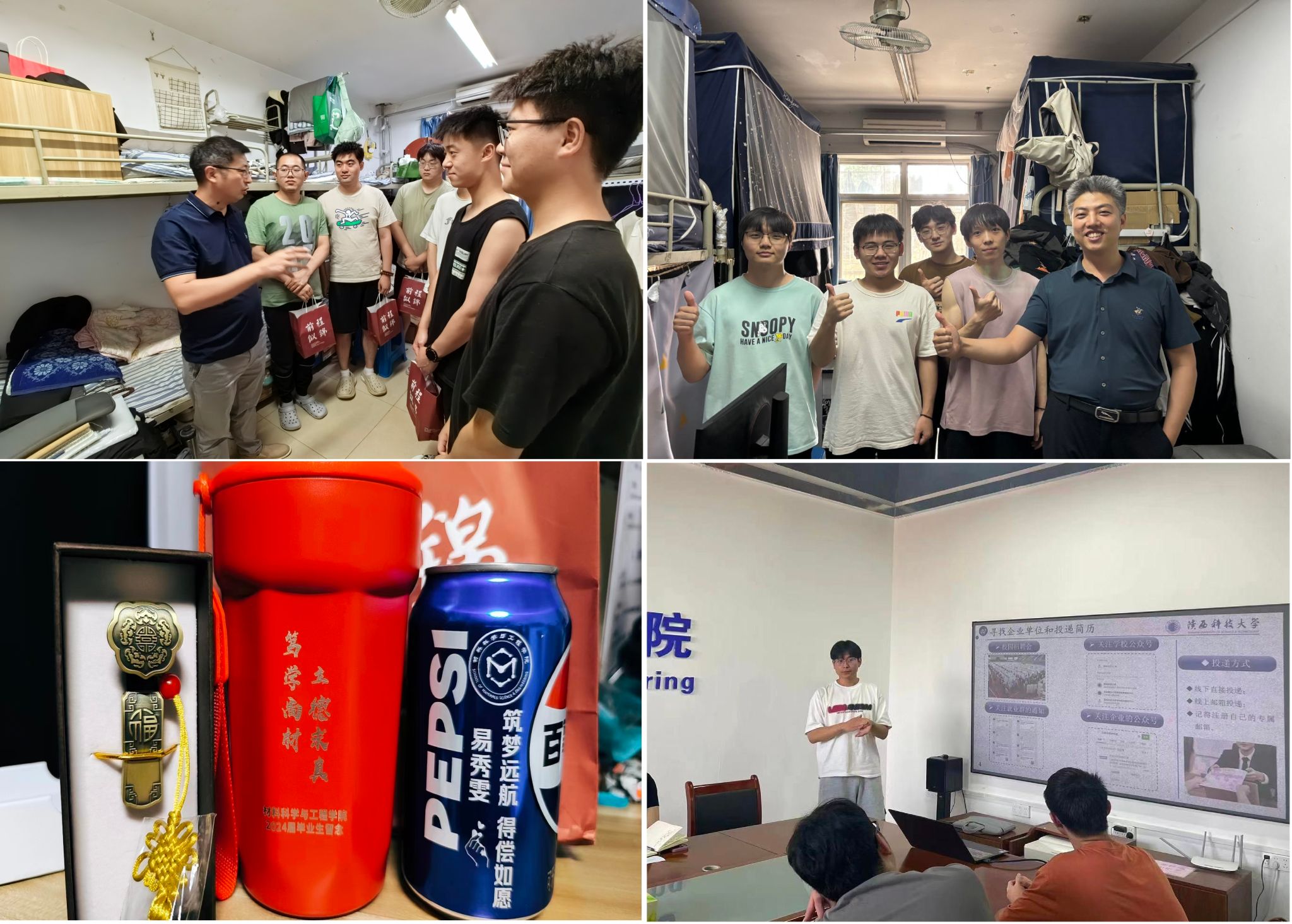 用力做好安全離校,深入育人場所,建設防范體系。學院班子成員、各系室主任、研究生導師、輔導員深入宿舍走訪慰問畢業(yè)生,了解畢業(yè)生思想動態(tài),送上學院定制的“畢業(yè)紀念”。強化值班巡查,優(yōu)化值班方案,形成“輔導員+學生骨干”聯(lián)動的值班體系,全面排查各類安全風險隱患,抓細落實畢業(yè)季學生安全穩(wěn)定工作。針對未落實就業(yè)畢業(yè)生,加強就業(yè)崗位的互聯(lián)共享和精準推送,學院開發(fā)科研助理崗位,吸納畢業(yè)生就業(yè)。按照“一生一策”要求,健全特殊群體畢業(yè)生就業(yè)幫扶工作臺賬,班子成員包干、輔導員精準指導,落實困難群體兜底幫扶責任。