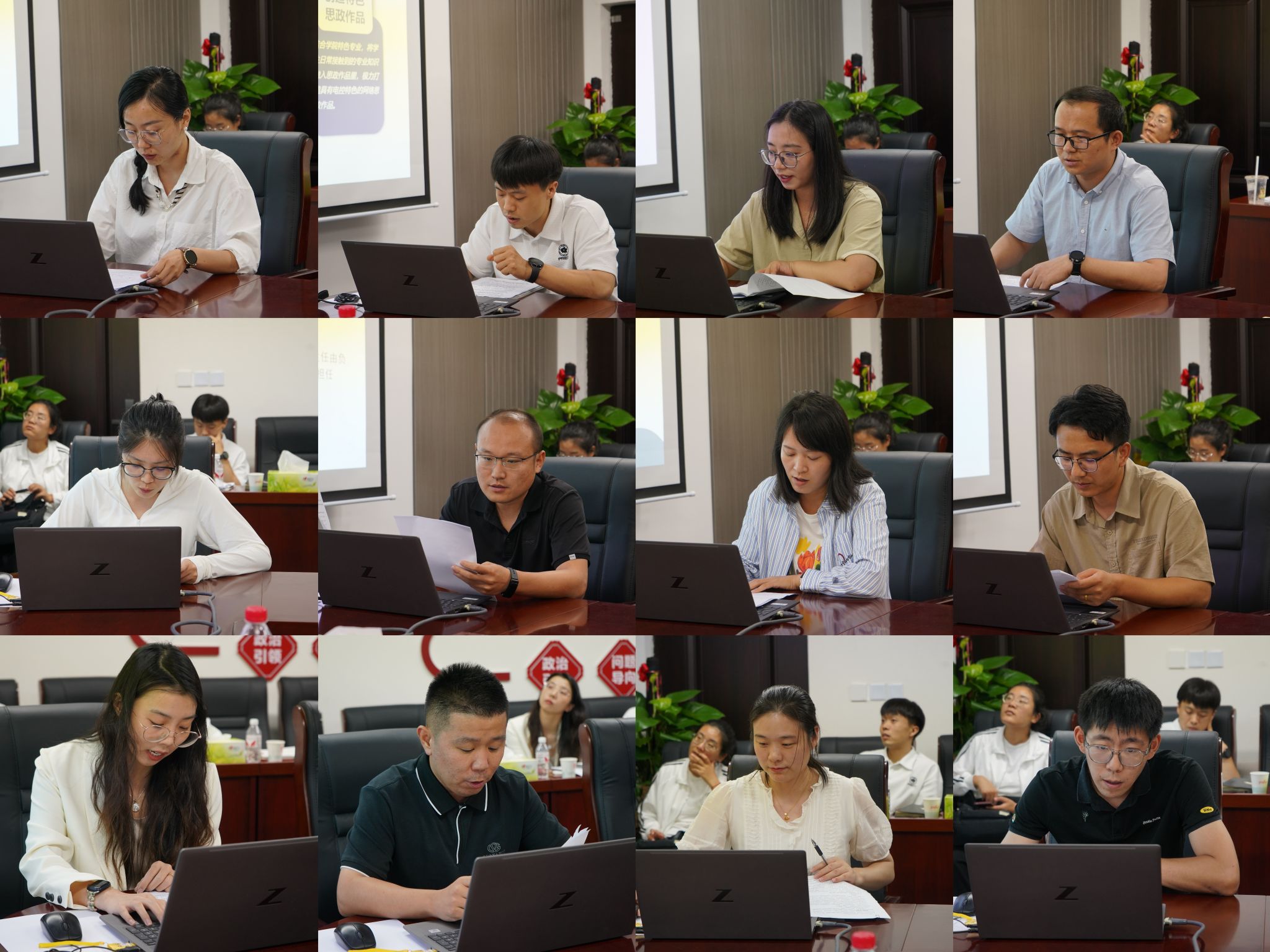 會議第二項,各學(xué)院網(wǎng)絡(luò)思政專項負(fù)責(zé)人圍繞建設(shè)目標(biāo)、工作思路、方案措施、特色做法、階段性成果等方面依次匯報了本學(xué)院2024上半年度網(wǎng)絡(luò)思政工作的開展和建設(shè)情況。各學(xué)院網(wǎng)絡(luò)思政工作目標(biāo)明確、特色鮮明、體系完整、成果頗豐,以易班體系化建設(shè)和網(wǎng)絡(luò)文化工作室創(chuàng)新性建設(shè)為抓手,在“大思政”育人格局下進(jìn)行了持續(xù)深入的探索。