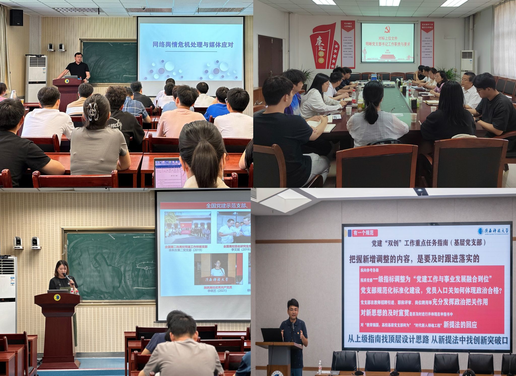 學(xué)院黨委高度重視本次支部書記培訓(xùn)班,以培優(yōu)育強黨建頭雁隊伍、促進基層黨建提質(zhì)增效為目標,精心籌備,結(jié)合黨紀學(xué)習(xí)教育共開展10個單元學(xué)習(xí);先后邀請6位院內(nèi)外教師,圍繞黨組織建設(shè)、黨支部書記工作職責(zé)與要求、標桿院系和樣板支部創(chuàng)建經(jīng)驗、網(wǎng)絡(luò)輿情危機處理等方面開展培訓(xùn)。13個師生黨支部高質(zhì)量組織推進,黨支部書記、支部委員積極參與,圓滿完成了培訓(xùn)任務(wù),基本達到了預(yù)期目的。本次培訓(xùn)突出學(xué)習(xí)宣傳貫徹習(xí)近平新時代中國特色社會主義思想、黨紀學(xué)習(xí)教育、學(xué)校第三次黨代會精神多個主題,通過“量身定制”培訓(xùn)輔導(dǎo),切實增強黨支部書記、支部委員的政治素質(zhì)、理論水平、黨性修養(yǎng)和黨務(wù)工作能力。
