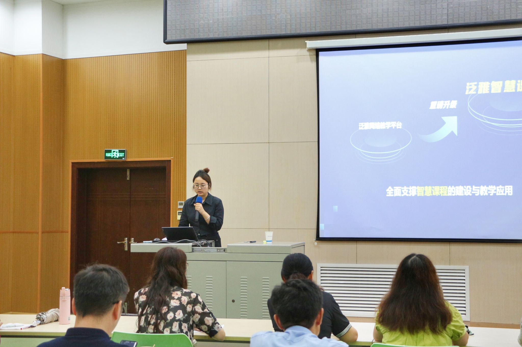 隨后,超星集團培訓師崔馨文作“AI 智慧課程助力教學改革探索與實踐”專題培訓。崔馨文介紹了超星泛雅智慧教學平臺如何通過AI技術(shù)賦能智慧教學及場景應用,重點對“智能體”“知識圖譜”“AI工具”三大核心升級進行講解說明,并對AI助教的使用、構(gòu)建知識樹、關(guān)聯(lián)課程資源等具體功能進行了現(xiàn)場演示。