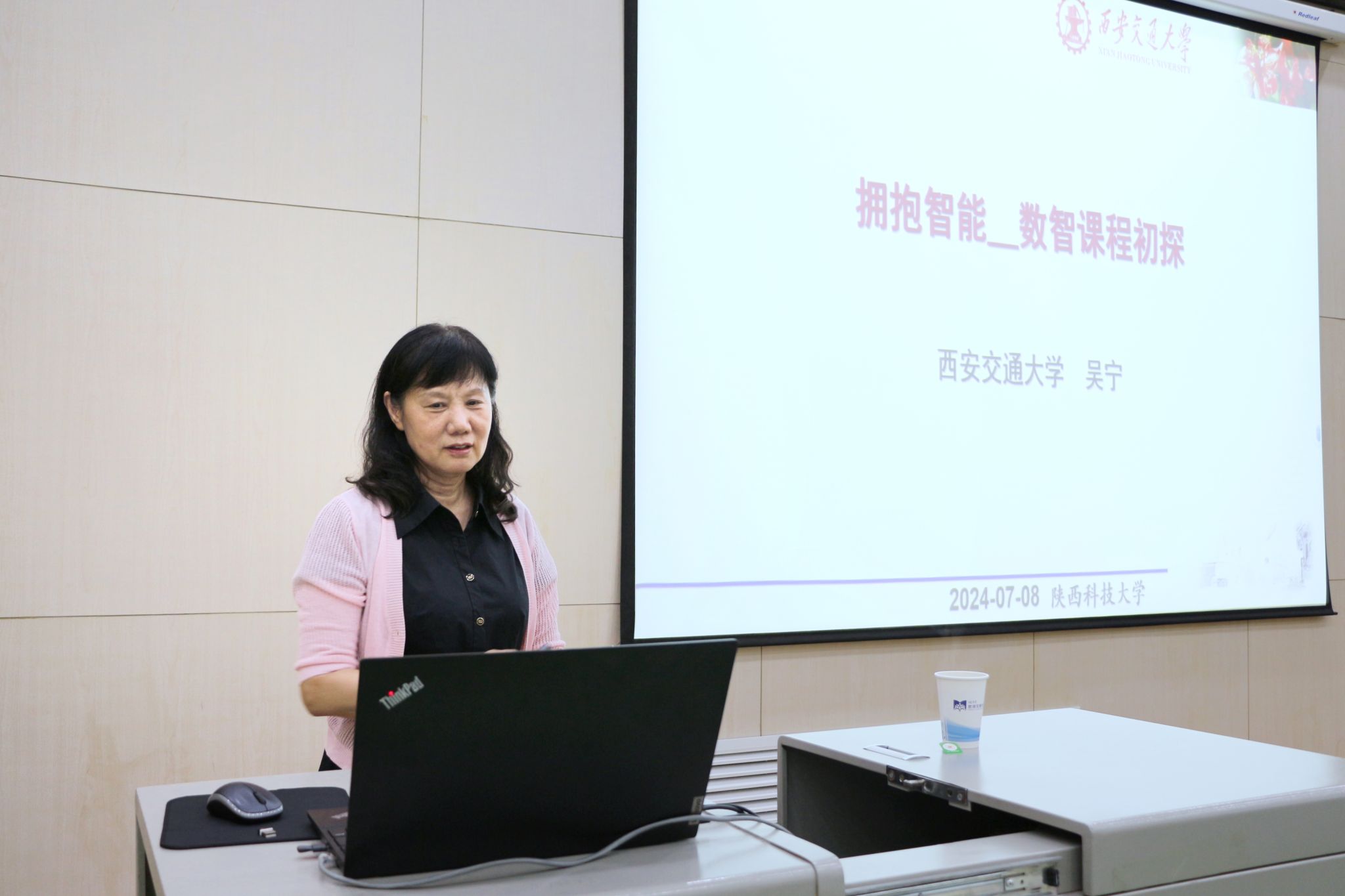活動分兩階段進行,首先由西安交通大學吳寧教授作“擁抱智能——數(shù)智課程初探”專題報告。吳寧介紹了人工智能的概念源起、政策導向,對以“大語言模型”為代表的生成式AI技術(shù)進行解讀。她以計算機基礎(chǔ)類課程為例,對該課程的個性化學習與評價體系進行了全面解析,并分享了自己對于AIGC發(fā)展的思考與體會。