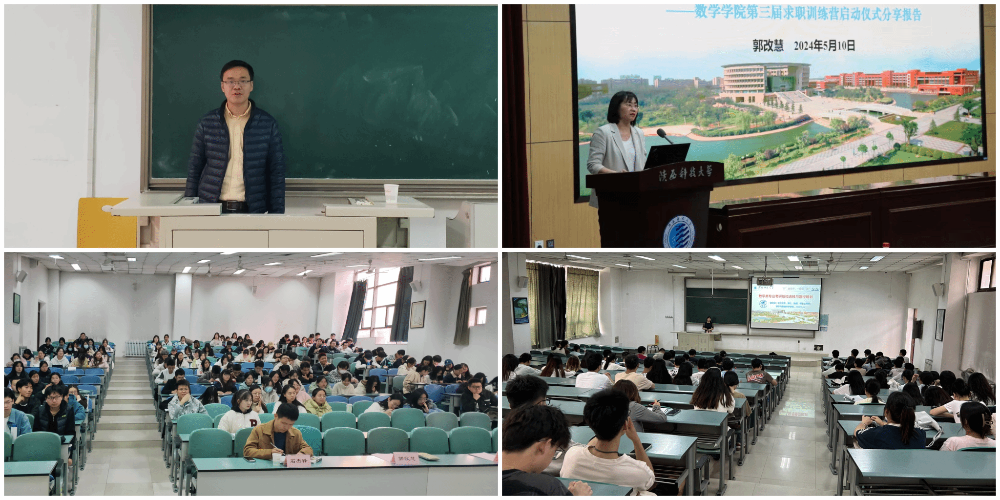 為幫助學(xué)生了解考研形勢,明確考研目標(biāo),早日做好復(fù)習(xí)規(guī)劃,2023年11月,學(xué)院召開2021級考研啟蒙動員會,邀請研究生院副院長吳魯陽和學(xué)院黨委書記郭改慧分析近年考研形勢、指導(dǎo)數(shù)學(xué)專業(yè)學(xué)生合理選擇院校、專業(yè),科學(xué)制訂備考計劃。為提高畢業(yè)生就業(yè)主動性和就業(yè)能力,促進學(xué)生高質(zhì)量就業(yè),今年5月,學(xué)院舉辦2025屆就業(yè)動員大會暨第三屆求職訓(xùn)練營啟動儀式,院長助理宋沛結(jié)合學(xué)院近幾屆畢業(yè)生就業(yè)去向,詳細(xì)分析了當(dāng)前就業(yè)形勢,介紹了互聯(lián)網(wǎng)行業(yè)、教培行業(yè)、金融行業(yè)等行業(yè)招聘情況,黨委書記郭改慧作了題為《“歷”兵秣馬,為“職”而來》的動員報告,她以生動的案例入手,引導(dǎo)學(xué)生樹立干事“闖”業(yè)的精氣神,敢想、敢闖、敢干,開拓思維,勇于嘗試。