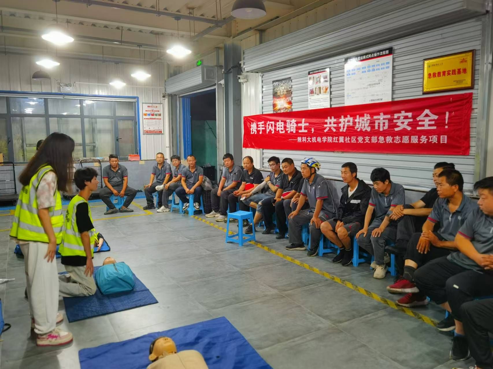 7月12日至8月15日,機電學(xué)院紅翼社區(qū)黨支部先后為順豐快遞未央?yún)^(qū)3個站點以及美團北大街外賣站點105名外賣、快遞人員開展了別開生面的急救培訓(xùn)。