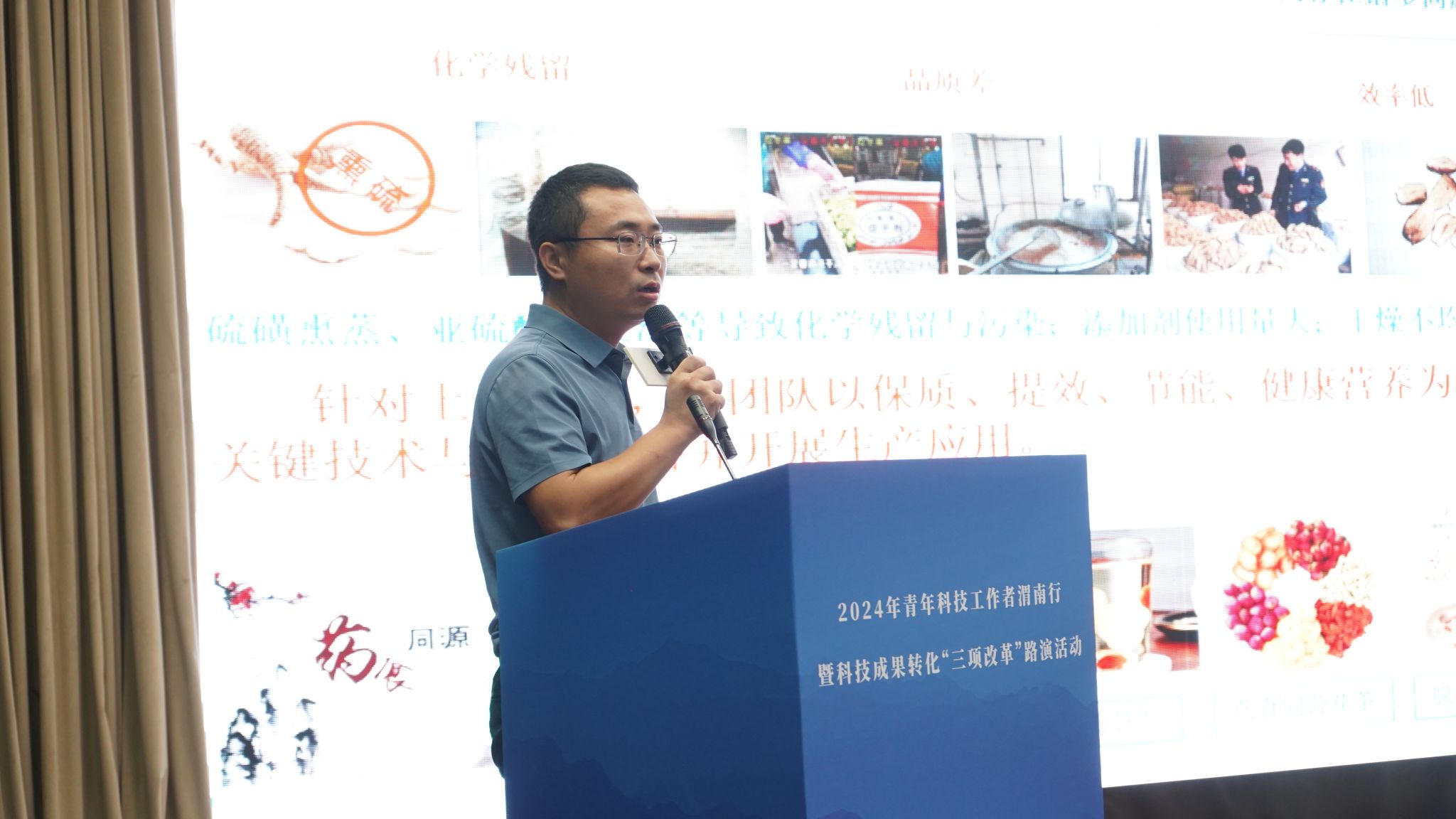 9月12日,由陜西省科學(xué)技術(shù)廳、陜西省科技資源統(tǒng)籌中心指導(dǎo),中共渭南市委組織部、渭南市科學(xué)技術(shù)局主辦,渭南市科技資源統(tǒng)籌中心承辦,渭南市技術(shù)經(jīng)理人協(xié)會、秦創(chuàng)原陜西科技大學(xué)(渭南)技術(shù)轉(zhuǎn)移中心、西安交通大學(xué)國家技術(shù)轉(zhuǎn)移中心渭南分中心、陜西省創(chuàng)業(yè)投資協(xié)會協(xié)辦的2024年青年科技工作者渭南行暨科技成果轉(zhuǎn)化“三項改革”路演活動舉行。我校設(shè)計與藝術(shù)學(xué)院黨委書記劉和林、物理與信息科學(xué)學(xué)院副教授丁書凱、機電工程學(xué)院博士王棟、我校渭南技術(shù)轉(zhuǎn)移中心負(fù)責(zé)人胡艷參加活動。