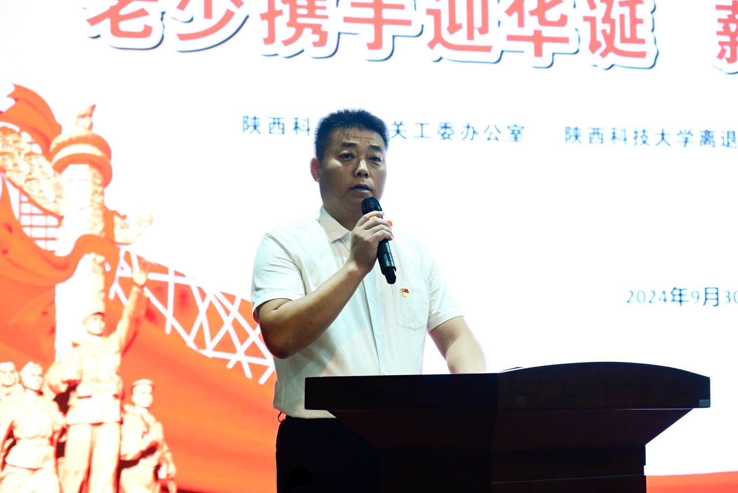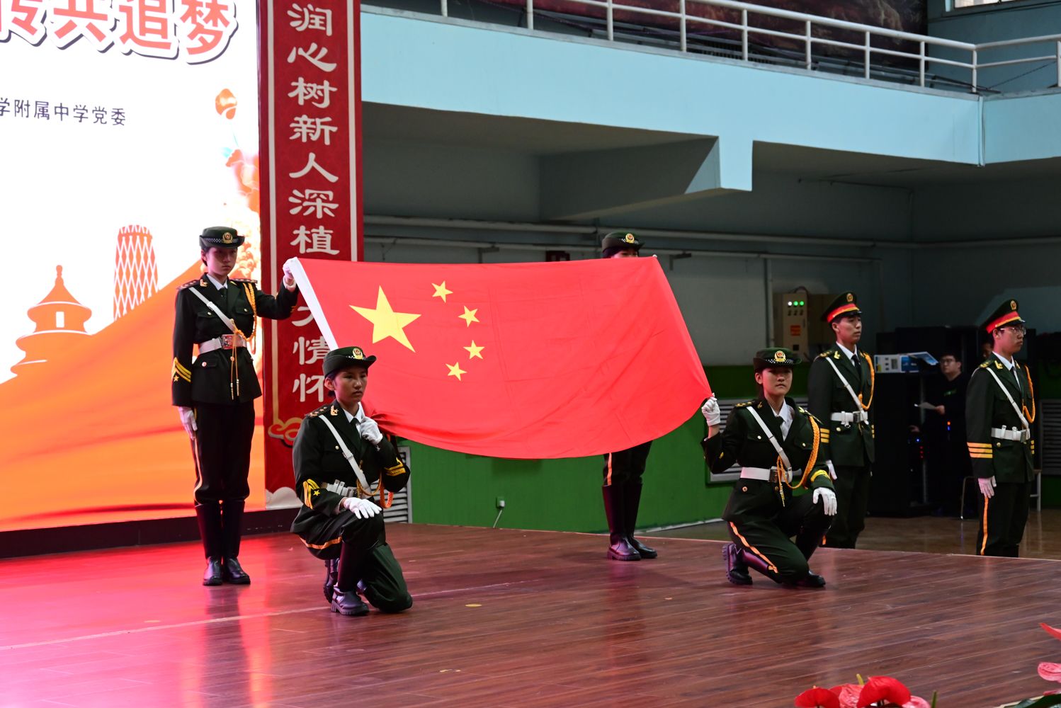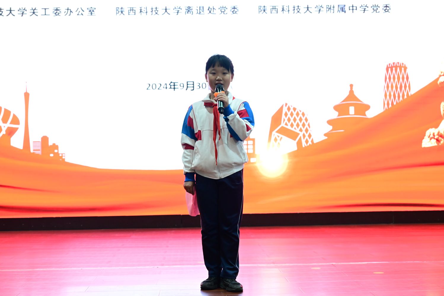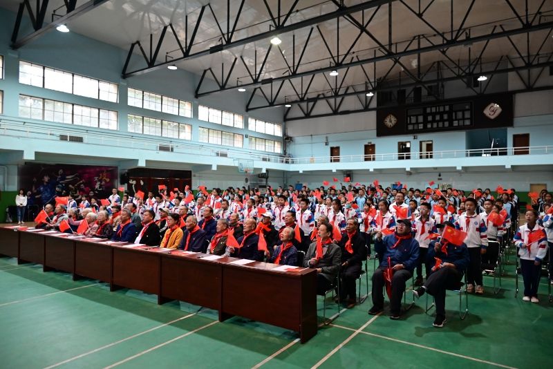 9月30日清晨,陜西科技大學(xué)附屬中學(xué)文體館內(nèi),師生們齊聚一堂,學(xué)校關(guān)工委辦公室、離退處黨委與附屬中學(xué)黨委聯(lián)合開展“老少攜手迎華誕 薪火相傳共追夢”主題升旗活動。附屬中學(xué)黨委書記、校長王琪,離退處黨委副書記、副處長高翔,處長助理苗曉潔出席活動,20余名離退休黨員代表與200余名青少年學(xué)子參與活動?;顒佑筛綄僦袑W(xué)校長助理成宏亮主持。
