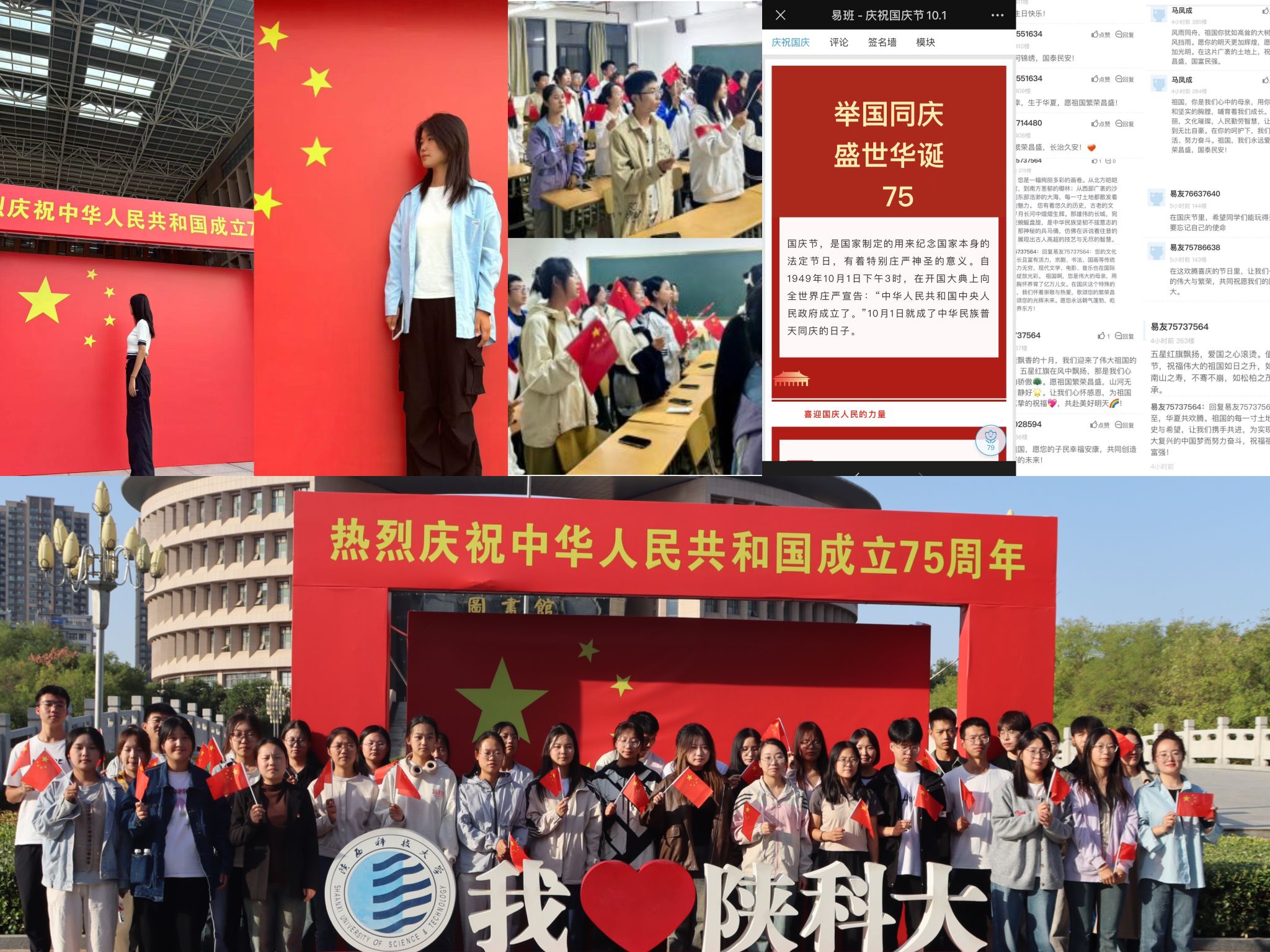 小我融入大我,青春告白祖國(guó)。學(xué)院先后開展“我與國(guó)旗合影”主題活動(dòng)、“巧手創(chuàng)紅藝,賀祖國(guó)華誕”慶國(guó)慶DIY創(chuàng)意活動(dòng)、“我想對(duì)祖國(guó)說(shuō)”校園打卡活動(dòng)、“志愿心向國(guó),筑夢(mèng)新時(shí)代”主題志愿服務(wù)活動(dòng)、“青春告白祖國(guó)”易班話題征集活動(dòng)、歌唱偉大祖國(guó)主題活動(dòng)等系列活動(dòng),通過(guò)線上線下多種方式,教育引導(dǎo)廣大青年學(xué)生立報(bào)國(guó)強(qiáng)國(guó)大志向、做挺膺擔(dān)當(dāng)奮斗者。