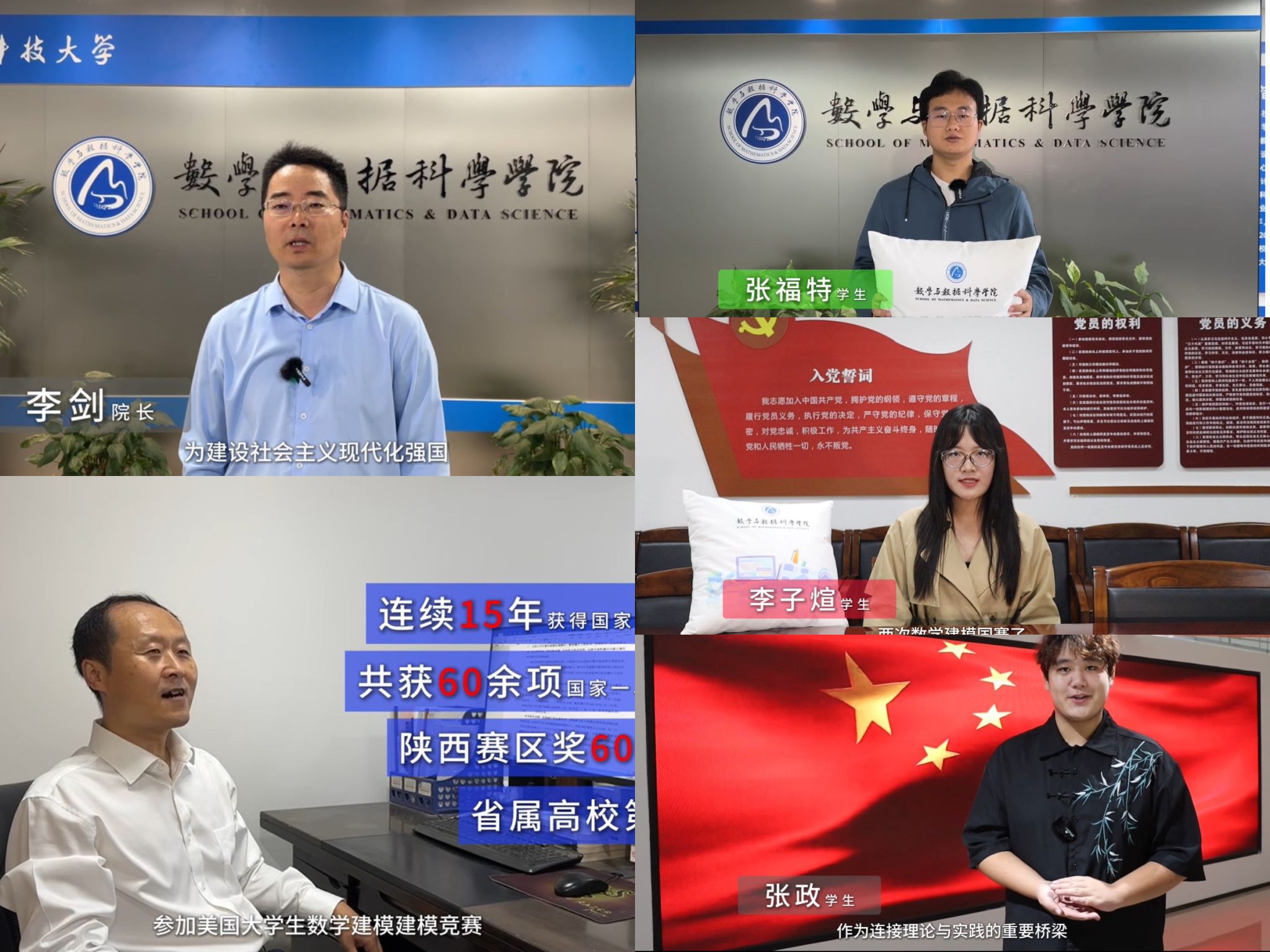 輝煌七十五載,數(shù)模筑夢(mèng)未來(lái)。為慶祝新中國(guó)成立75周年,學(xué)院特別策劃拍攝“輝煌七十五載,數(shù)模筑夢(mèng)未來(lái)”宣傳片,邀請(qǐng)?jiān)洪L(zhǎng)、系主任介紹數(shù)學(xué)建模相關(guān)工作,四名學(xué)生代表分享參賽歷程與感悟,將學(xué)科競(jìng)賽與勵(lì)志成才有機(jī)結(jié)合,激勵(lì)廣大學(xué)子以更加飽滿的熱情投入到數(shù)學(xué)學(xué)習(xí)實(shí)踐中,以優(yōu)異的成績(jī)?yōu)樽鎳?guó)基礎(chǔ)學(xué)科發(fā)展貢獻(xiàn)力量。