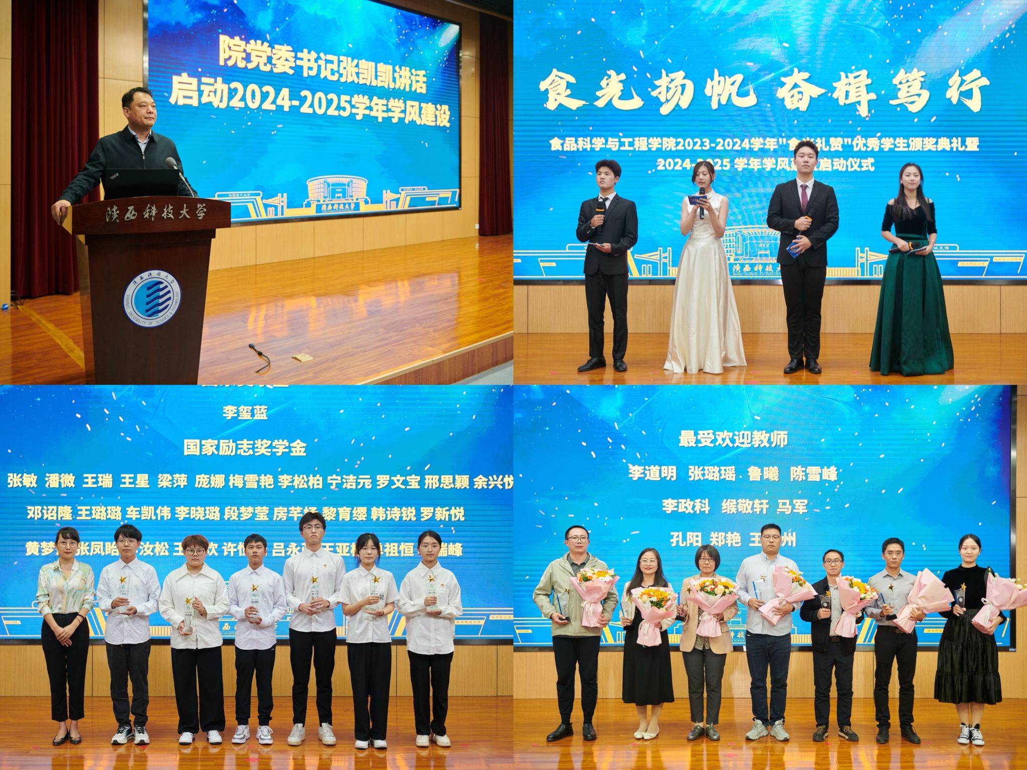 為了深入學習貫徹黨的二十大精神和黨的二十屆三中全會精神,營造優(yōu)良濃厚的學習氛圍, 10月14日,食品學院在圖書館學術報告廳舉辦“食光禮贊”優(yōu)秀學生頒獎典禮暨2024-2025學年學風建設啟動儀式。學院黨委書記張凱凱及學院黨政班子成員、教師代表、校學生會主席團成員、學院各年級學生代表參加活動。