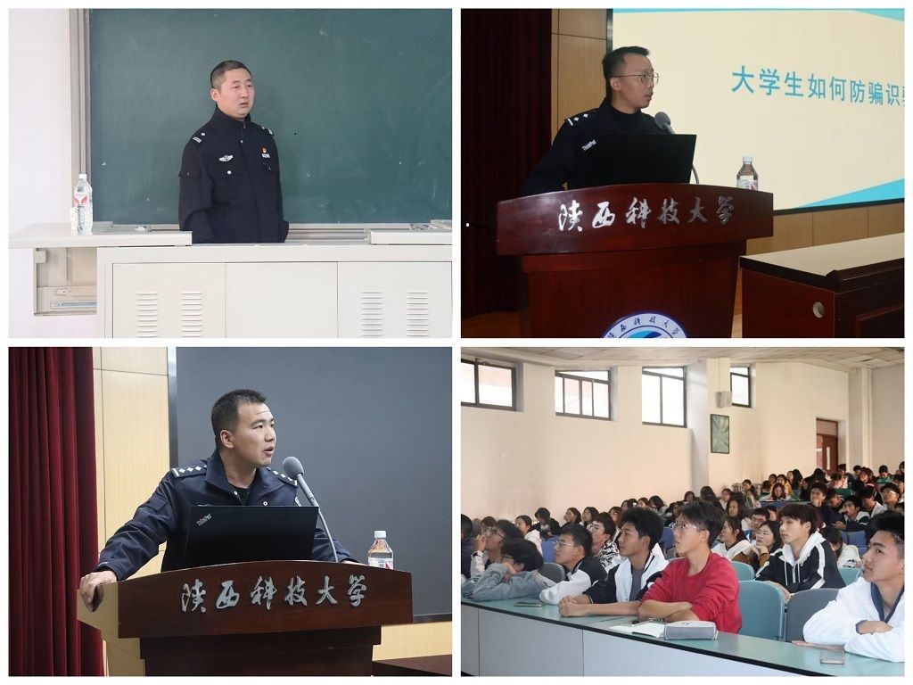 第一場講座以“防范網(wǎng)絡(luò)詐騙——校園反詐安全普法教育”為主題,特邀西安市公安局碑林區(qū)分局反電信網(wǎng)絡(luò)詐騙中心兩位民警,為學(xué)院全體大一新生講授網(wǎng)絡(luò)安全第一課?;顒右噪娦旁p騙題材電影《孤注一擲》開場,特邀嘉賓結(jié)合西安市內(nèi)多起真實詐騙案例,詳細(xì)介紹了刷單類、冒充類、網(wǎng)購類及殺豬盤、釣魚短信詐騙、網(wǎng)絡(luò)招嫖、投資理財?shù)榷喾N詐騙類型,重點(diǎn)分析了犯罪分子如何利用人性的弱點(diǎn)實施詐騙,現(xiàn)場展示了各類高科技詐騙設(shè)備照片、抓捕電詐犯罪分子照片以及民警指導(dǎo)受害人反詐的工作視頻等,并通過防詐騙知識問答等互動形式,引導(dǎo)學(xué)生加深理解認(rèn)識、增強(qiáng)防范意識。