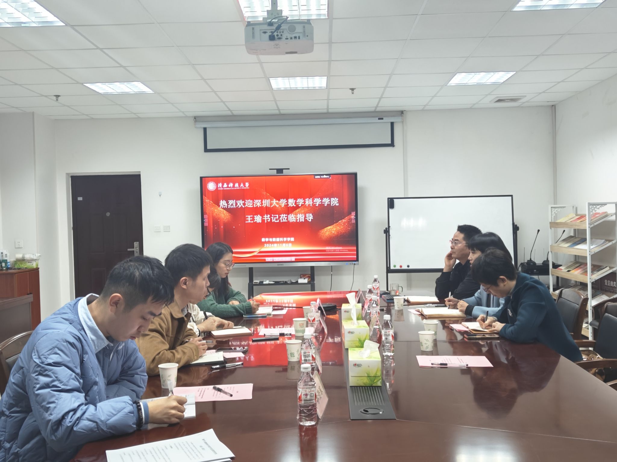 11月6日上午,深圳大學數(shù)學科學學院黨委書記王瑜來校調研交流。數(shù)學與數(shù)據(jù)科學學院院長李劍、院長助理宋沛及全體輔導員參加座談,會議由宋沛主持。