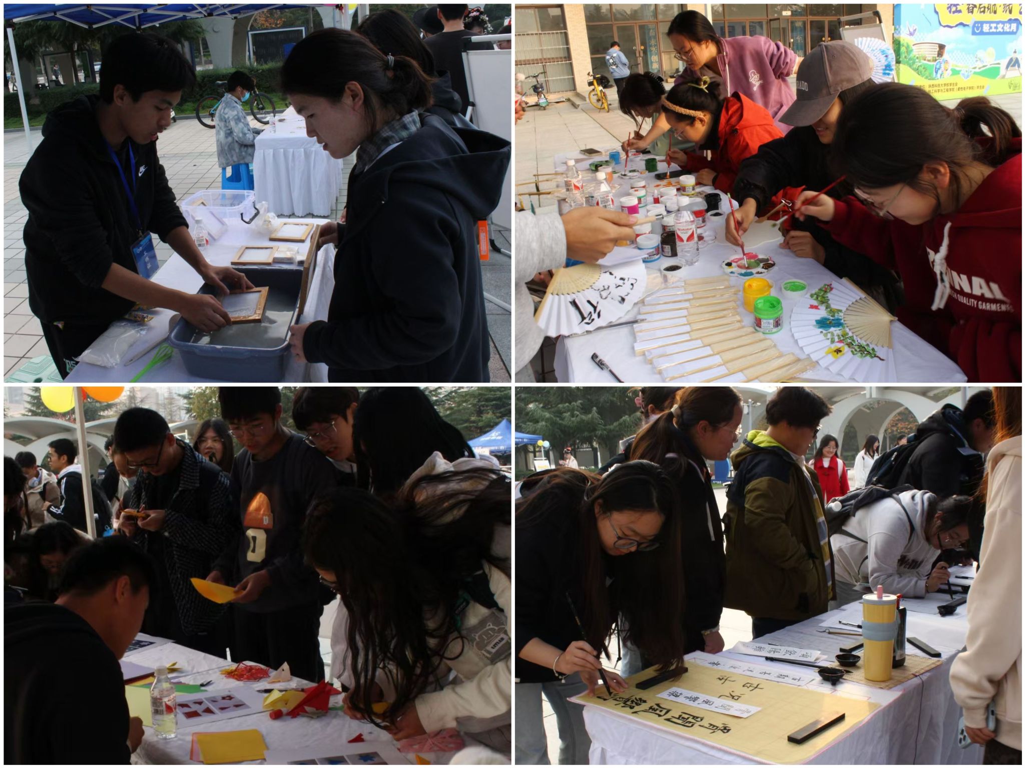 活動通過教學(xué)實操、互動交流、實踐體驗等方式,開展了古法抄紙、非遺剪紙、書法創(chuàng)作、紙扇繪制、知識競答、漢服校園拍等學(xué)生喜聞樂見的體驗互動,引領(lǐng)青年學(xué)生從輕工文化出發(fā),切身感受非遺文化的魅力,激發(fā)文化傳承創(chuàng)新的力量,吸引了近千師生參與其中?;顒蝇F(xiàn)場,人頭攢動,氣氛熱烈,古法抄紙體驗帶領(lǐng)師生親手操作,在專業(yè)學(xué)生指導(dǎo)下實踐這一古老而珍貴的技藝;剪紙區(qū),同學(xué)們動手剪出一幅幅栩栩如生、形態(tài)各異的圖案,感受這項獨具藝術(shù)風(fēng)格和文化內(nèi)涵的世界文化遺產(chǎn);紙扇創(chuàng)作區(qū),同學(xué)們在團(tuán)扇、折扇上盡情繪畫,傳統(tǒng)水墨、油畫、水彩等創(chuàng)作紛紛展現(xiàn),田園詩意躍紙上,墨香彩溢醉人心……整個活動行云流水,從制造一張紙、加工一張紙到文、畫躍然紙上,再到紙和技藝成為文化的載體,引領(lǐng)學(xué)生探索專業(yè)與文化的交融。