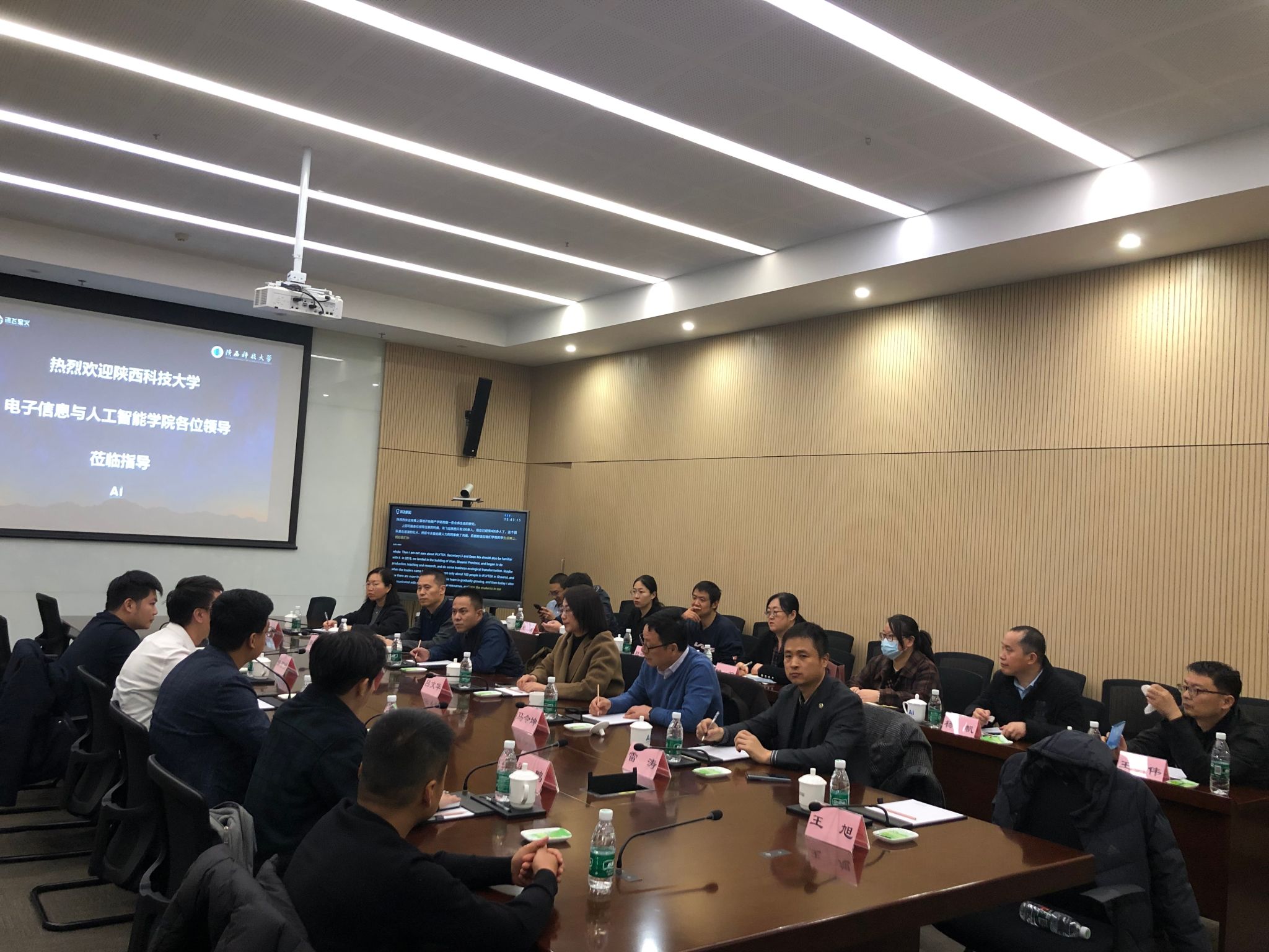 12月2日,電子信息與人工智能學院班子成員、系主任、教工黨支部書記和相關專業(yè)負責人等前往西安科大訊飛股份有限公司絲路總部(以下簡稱科大訊飛)進行參觀交流??拼笥嶏w高教行業(yè)總監(jiān)焦永祿、高教客群咨詢總監(jiān)許可楊、雙創(chuàng)合作總監(jiān)李小龍、高校行業(yè)市場經(jīng)理梁鵬等參加了活動。