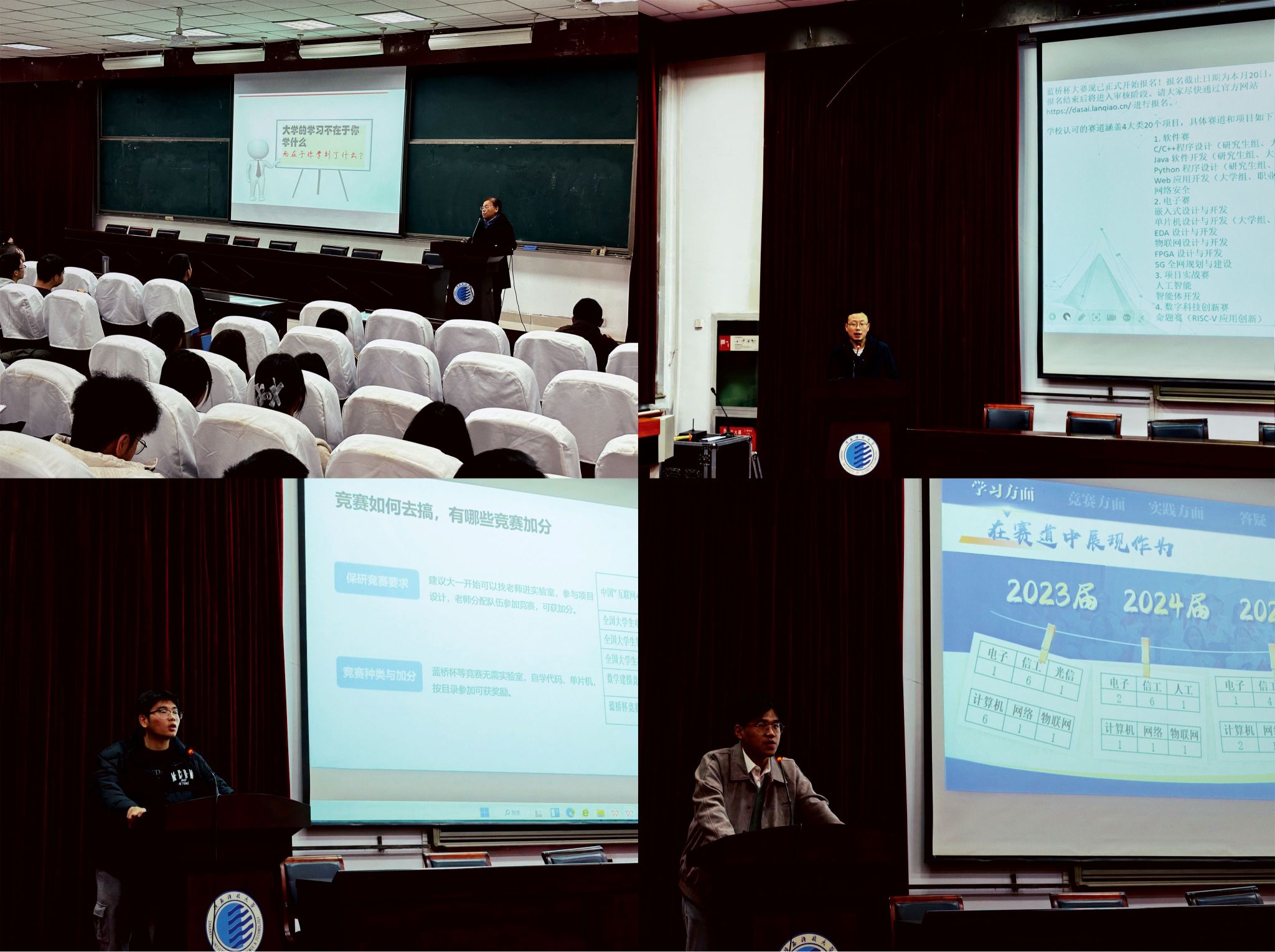 一方面,聘任學(xué)院班子成員、系主任、專業(yè)負(fù)責(zé)人、青年博士等21人組成新生班級(jí)學(xué)業(yè)導(dǎo)師團(tuán),將專任教師優(yōu)勢(shì)與學(xué)生思想政治教育工作有機(jī)結(jié)合,合理把控工作側(cè)重并形成有效互補(bǔ),為新生深度解讀各專業(yè)的前沿動(dòng)態(tài)、發(fā)展前景與就業(yè)方向,筑牢專業(yè)認(rèn)知基礎(chǔ),堅(jiān)定專業(yè)選擇決心,助力后續(xù)專業(yè)學(xué)習(xí)。同時(shí),舉辦“電路焊接技術(shù)培訓(xùn)”“學(xué)科競(jìng)賽答疑記者會(huì)”等實(shí)操性活動(dòng),培養(yǎng)新生科技創(chuàng)新與動(dòng)手實(shí)踐能力。
