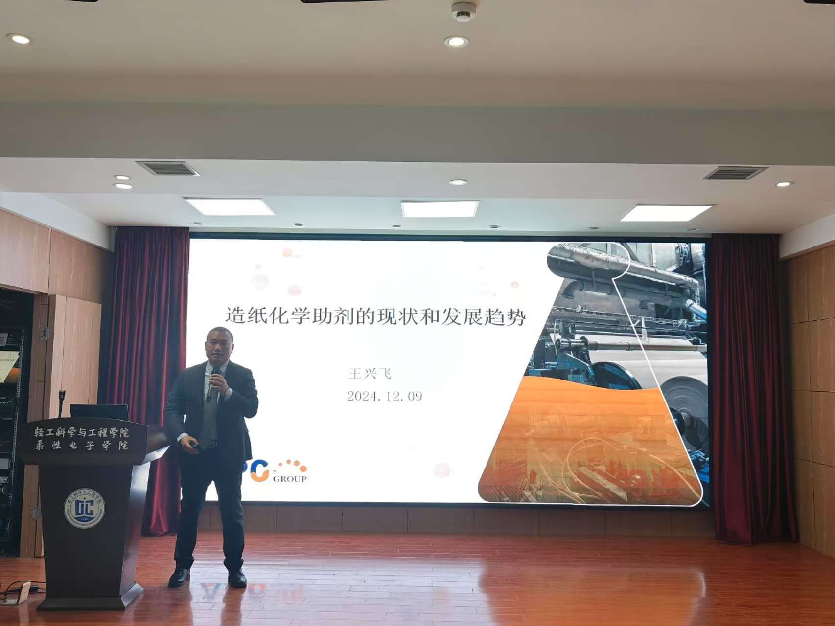 隨后與會嘉賓為本年度獲得“亞馬遜化工”獎學(xué)金的27名學(xué)子頒獎并合影留念。儀式后,王興飛為在場師生做了“造紙化學(xué)助劑的現(xiàn)狀和發(fā)展趨勢”的分享交流,在答疑互動環(huán)節(jié)中,結(jié)合自身工作經(jīng)歷,為在場學(xué)生分享了個人發(fā)展和職業(yè)規(guī)劃技能,解答了學(xué)生在學(xué)業(yè)和求職中遇到的各種問題。