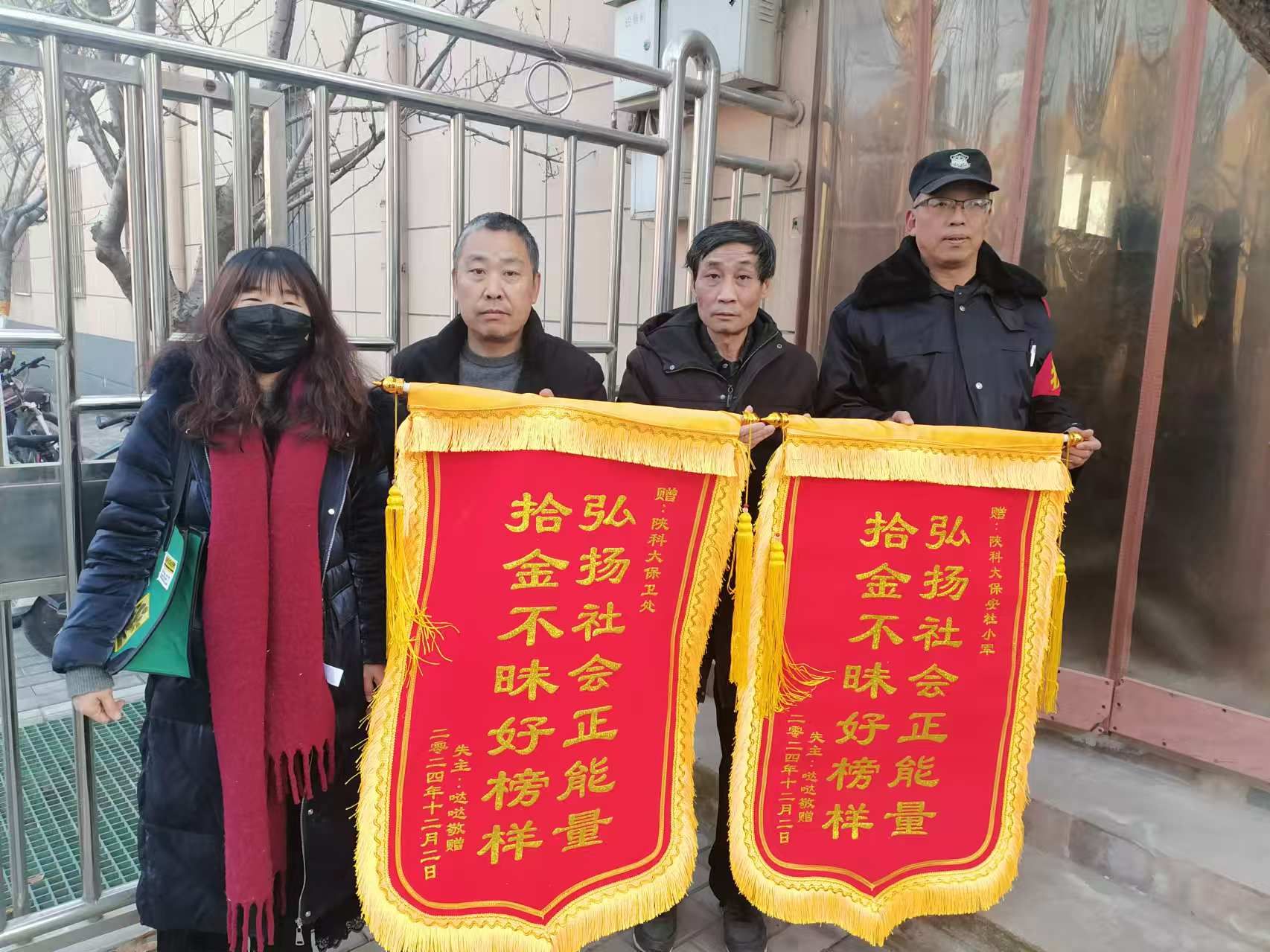 12月17日,一位來自陜科大社區(qū)的居民到咸陽校區(qū)管委會保衛(wèi)部,將一面寫有“弘揚(yáng)社會正能量 拾金不昧好榜樣”大紅錦旗鄭重地送到保安杜小軍和保衛(wèi)部工作人員的手上。事發(fā)當(dāng)天,小區(qū)保安杜小軍執(zhí)勤時在路邊發(fā)現(xiàn)一個鼓鼓的錢包,他第一時間上報管理人員并在現(xiàn)場守候,待同事到場后一起打開錢包,通過其中的證件多方找到失主的聯(lián)系方式,及時通知焦急的失主取回錢包。事后,這位居民十分感動,隨即送來錦旗表達(dá)謝意。平日里小區(qū)保安幫助居民找還失物、扶助病弱、提醒鎖車等日常暖心事時有發(fā)生,為居民生活增添了一縷縷友善和暢、溫馨和諧的底色。