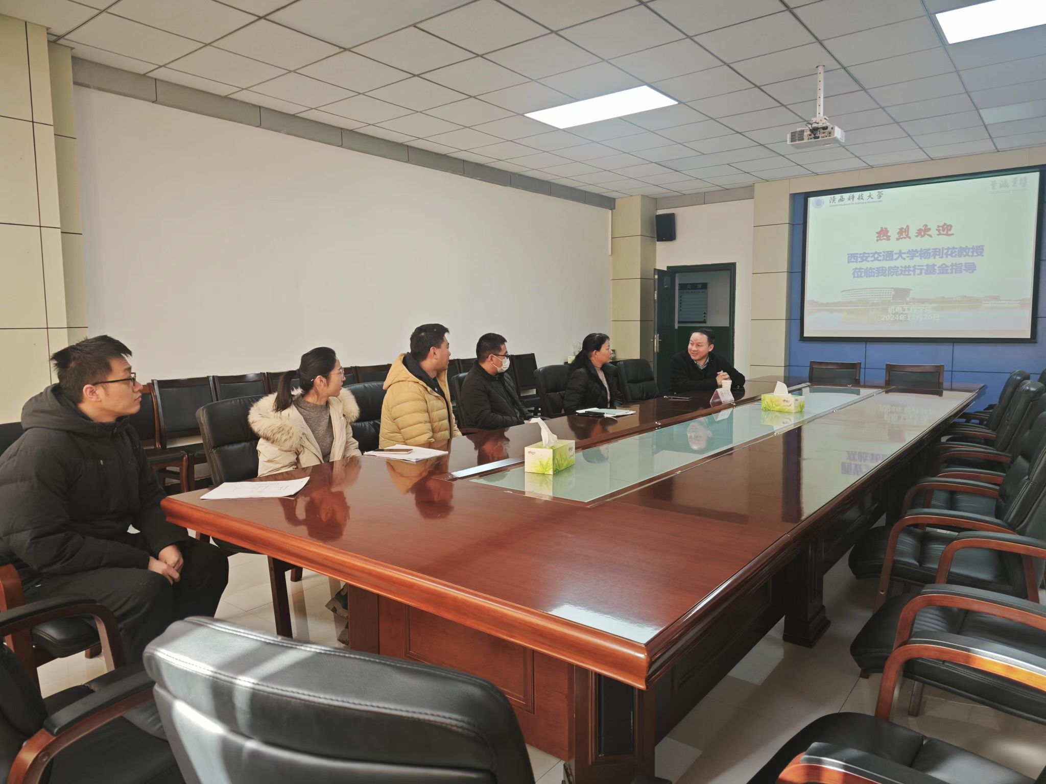 袁越錦對楊利花的到來表示熱烈歡迎,首先介紹了機(jī)電學(xué)院近年來的發(fā)展情況和所取得的科研成果。同時表示機(jī)電學(xué)院科研工作的高效開展快速進(jìn)步離不開西安交通大學(xué)等陜西標(biāo)桿高校的幫助。