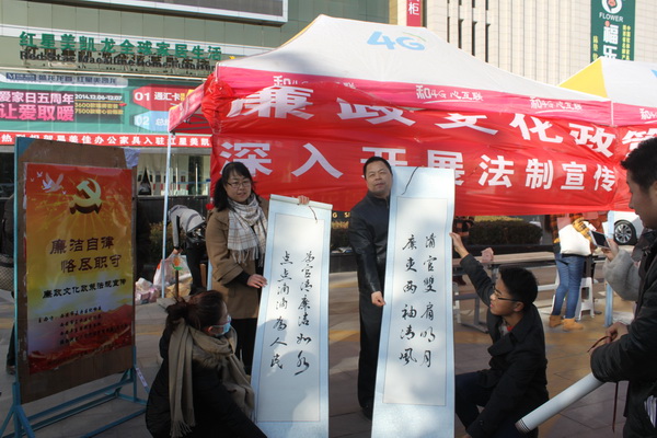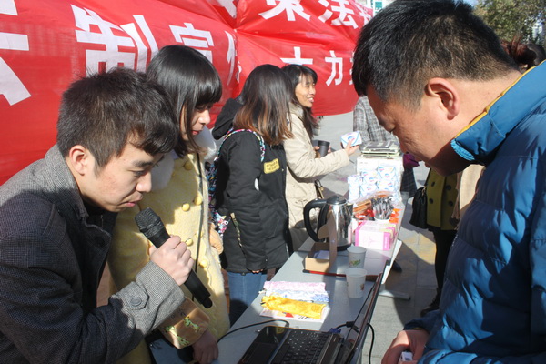 在我國第一個“憲法日”來臨之際,為全面貫徹落實十八屆四中全會精神,增強全民法治觀念,強化反腐倡廉意識,推進法治社會建設(shè),由西安市未央?yún)^(qū)紀委、司法局主辦,我校管理學(xué)院團委與法學(xué)系及陜西豐東律師事務(wù)所承辦的12·4“憲法日”公益法制宣傳活動在未央?yún)^(qū)龍首村紅星美凱龍廣場舉行。