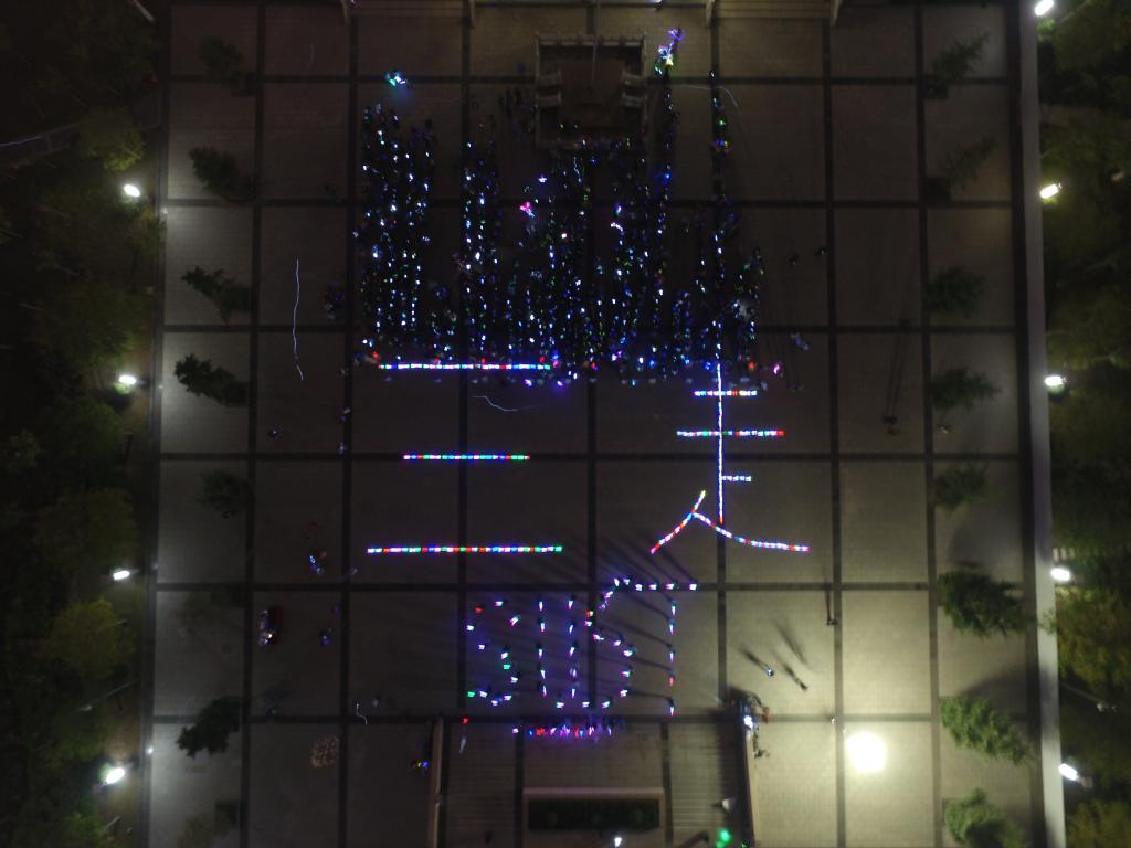 開幕式現場熒光閃爍、彩旗飄揚,60名同學手持熒光棒組成“SUST”隊形站在隊伍的最前方,12個學院隊列在院旗的引領下依次排開、井然有序,熒光棒排列組成的“三走”字樣在廣場中央熠熠生輝。