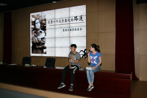文化傳播學(xué)院藝播專業(yè)的兩位學(xué)生還現(xiàn)場演繹了《平凡的世界》書中人物孫少平、田曉霞的對話片段,人物形象躍然再現(xiàn),與會(huì)師生看得是津津有味。