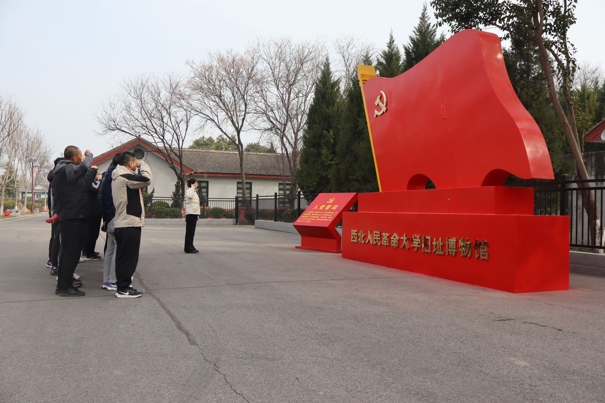 本次活動(dòng)旨在通過“沉浸式現(xiàn)場(chǎng)教學(xué)、儀式化黨性錘煉、互動(dòng)式實(shí)踐研學(xué)”的三維教育模式,探索構(gòu)建理論學(xué)習(xí)、黨性剖析、實(shí)踐研學(xué)深度融合的黨員教育管理新模式。3月8日上午,體育部全體教職工首先來到西北人民革命大學(xué)舊址,在講解員的引導(dǎo)下,駐足觀看西北人民革命大學(xué)“忠誠老實(shí)、實(shí)事求是、團(tuán)結(jié)互助、艱苦樸素”質(zhì)樸校風(fēng),穿越時(shí)空感受老一輩革命家“忠誠于黨、艱苦奮斗”的精神品格,面對(duì)復(fù)原的歷史場(chǎng)景和珍貴文物,黨員和教師們駐足凝視,深刻體悟“為黨育人、為國育才”的初心使命。在紅色黨旗墻前,預(yù)備黨員在鮮紅黨旗下莊嚴(yán)宣誓,全體黨員重溫入黨誓詞,錚錚誓言回蕩在革命舊址上空,彰顯新時(shí)代科大體育人的堅(jiān)定信念。在高陵博物館,全體教職工一邊追尋高陵地區(qū)紅色斗爭(zhēng)的歷史記憶,另一邊參觀現(xiàn)代農(nóng)業(yè)發(fā)展的時(shí)代成就,感受著歷史變遷的“涇渭分明”,又感念到革命的火種代代相傳。整個(gè)活動(dòng)設(shè)計(jì)為“參觀-宣誓-研學(xué)”的實(shí)踐鏈條,采取“歷史現(xiàn)場(chǎng)教學(xué)+現(xiàn)實(shí)對(duì)照反思”的模式,有效推動(dòng)黨性教育從認(rèn)知認(rèn)同向?qū)嵺`轉(zhuǎn)化。