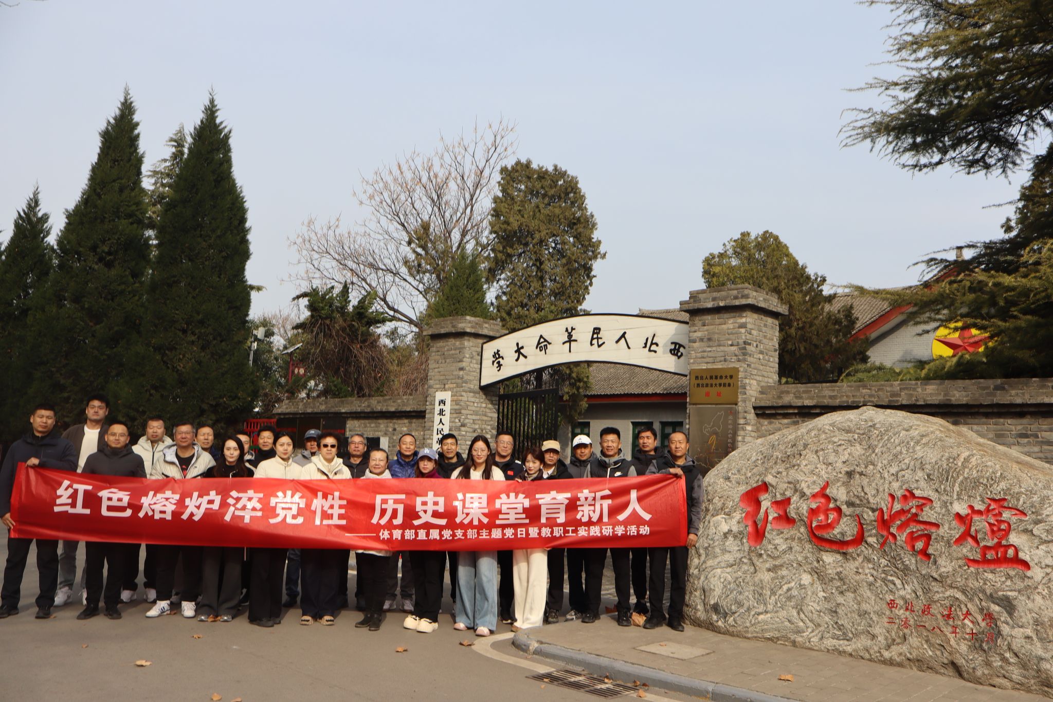 為深化2024年度民主生活會(huì)和組織生活會(huì)的理論學(xué)習(xí)和對(duì)照檢視成效,結(jié)合2025年度工作計(jì)劃,3月8日上午,體育部直屬黨支部組織全體黨員和教職工赴高陵開展了“紅色熔爐淬黨性 歷史課堂育新人”主題黨日暨師德師風(fēng)教育實(shí)踐研學(xué)活動(dòng),先后參觀了西北人民革命大學(xué)舊址和高陵博物館。