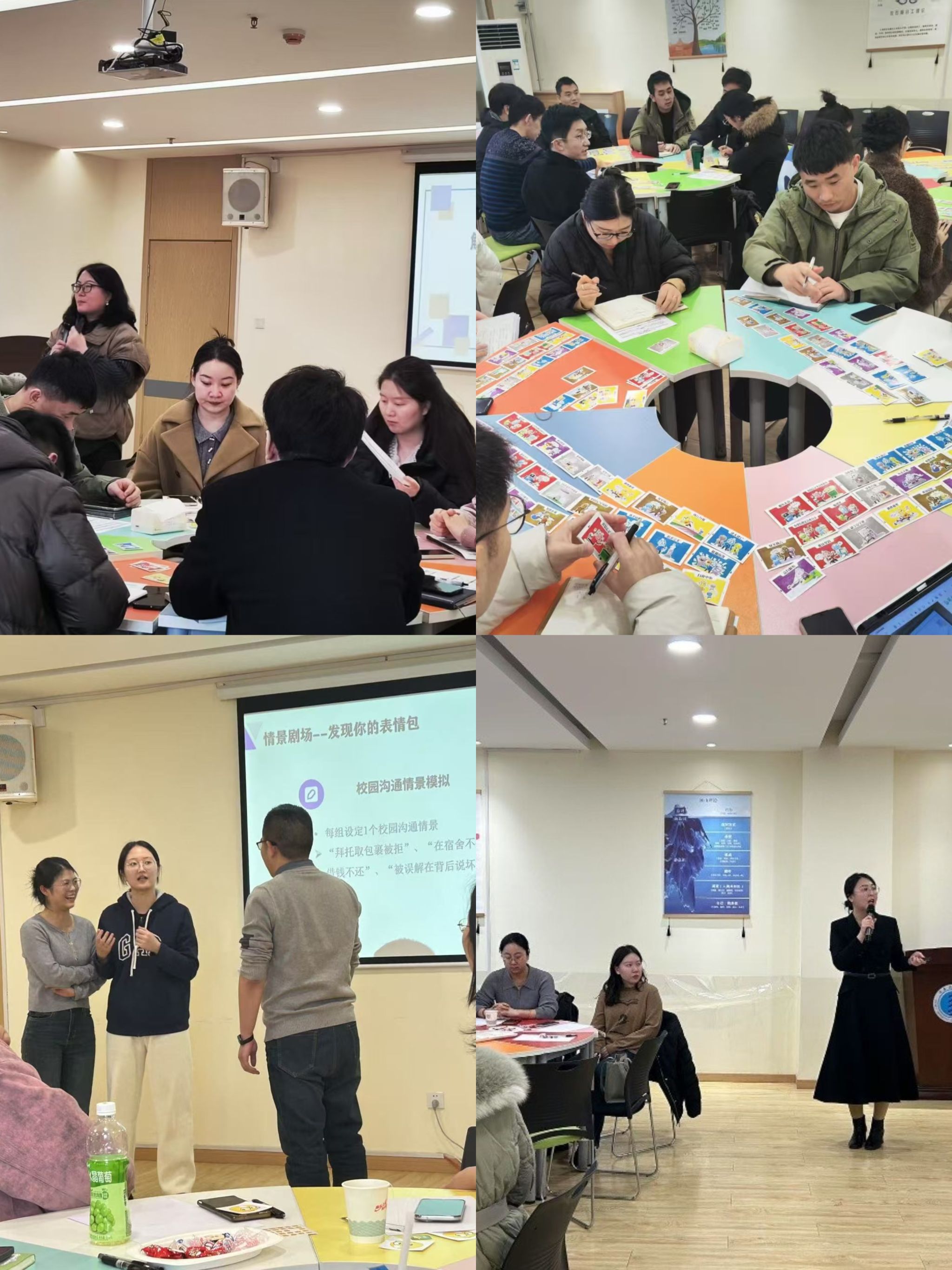 示范課程采用分年級、分專題階梯式課程框架,將自我認識、人際關系、情感教育、情緒調節(jié)四大主題融入不同學段,實現(xiàn)理論講授、角色扮演、情境模擬等實踐環(huán)節(jié)深度融合,針對性補強心理健康教育實踐短板,切實提升心理健康教育從知識傳授到行為養(yǎng)成的轉化效能。在示范教學環(huán)節(jié)中,主講老師針對學生心理健康教育實踐中普遍存在的問題及其解決策略進行了探討交流,并現(xiàn)場演示了大六人格卡牌的解讀技巧;細致講解了表情卡片的應用及四種溝通模式,組織了分組場景演繹活動;引入冰山理論解析心理深層需求,教授輔導員處理學生心理問題及矛盾調解技巧;指導使用一致性溝通三步法,倡導以正確的方式表達個人訴求,以培養(yǎng)良好心理素質和行為習慣。