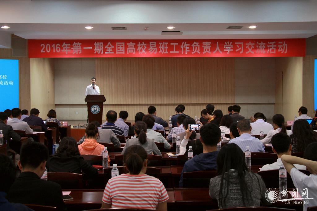 2016年第一期全國高校易班工作負(fù)責(zé)人學(xué)習(xí)交流會于5月20日在中國石油大學(xué)(華東)舉行。教育部易班發(fā)展中心主任朱明倫和來自全國25所(20所部屬和5所省屬)易班共建高校的負(fù)責(zé)人參加會議。四所高校(中國石油大學(xué)、東華大學(xué)、陜西科技大學(xué)、福州大學(xué))易班負(fù)責(zé)人先后發(fā)言,介紹本校易班建設(shè)情況并交流建設(shè)經(jīng)驗。我校學(xué)工部副部長楊建(主持工作)代表學(xué)校作交流發(fā)言。