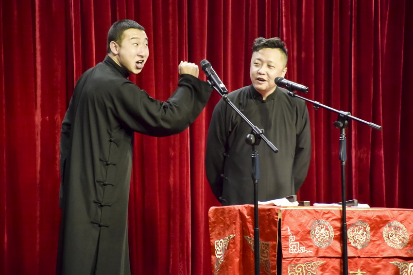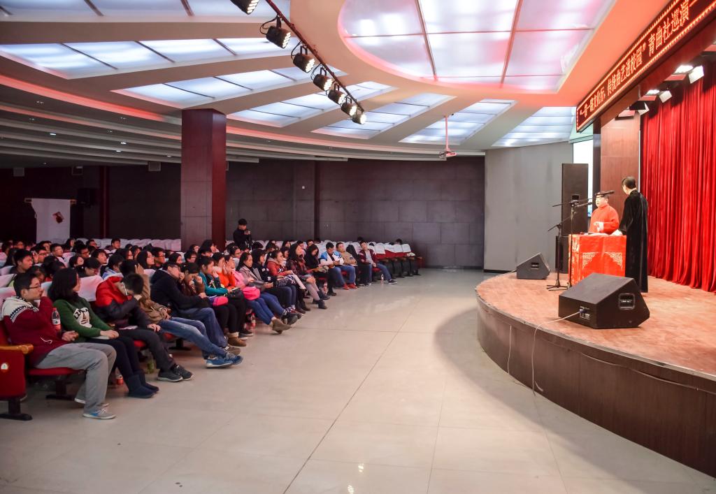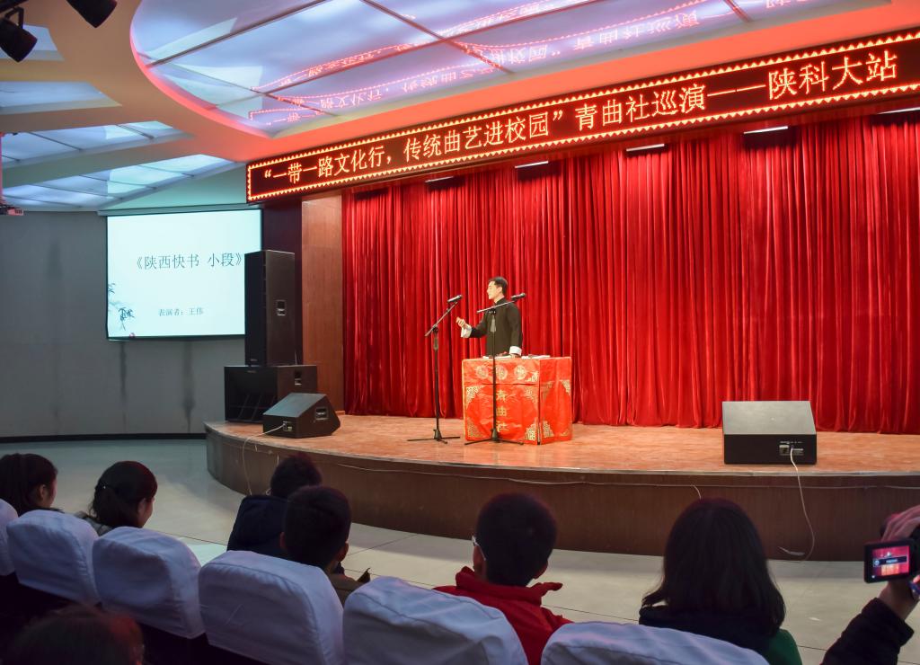 “一帶一路文化行,傳統(tǒng)曲藝進(jìn)校園”,青曲社巡演——陜科大站于12月11日下午十四時(shí)在大學(xué)生活動(dòng)中心開演。兩個(gè)小時(shí)、五個(gè)節(jié)目,臺(tái)上相聲藝術(shù)家們表演酣暢淋漓,臺(tái)下觀眾觀看投入、樂在其中。