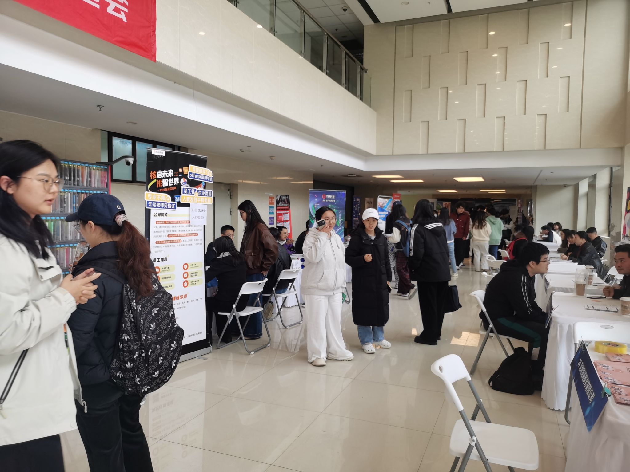 3月27日,陜西科技大學2025屆畢業(yè)生春季人文教育及藝術(shù)類專場雙選會在人文樓一樓大廳舉行,本次招聘活動由學生就業(yè)指導中心主辦,經(jīng)濟與管理學院、設計與藝術(shù)學院、數(shù)學與數(shù)據(jù)科學學院、物理與信息科學學院、文化與教育學院共同承辦。