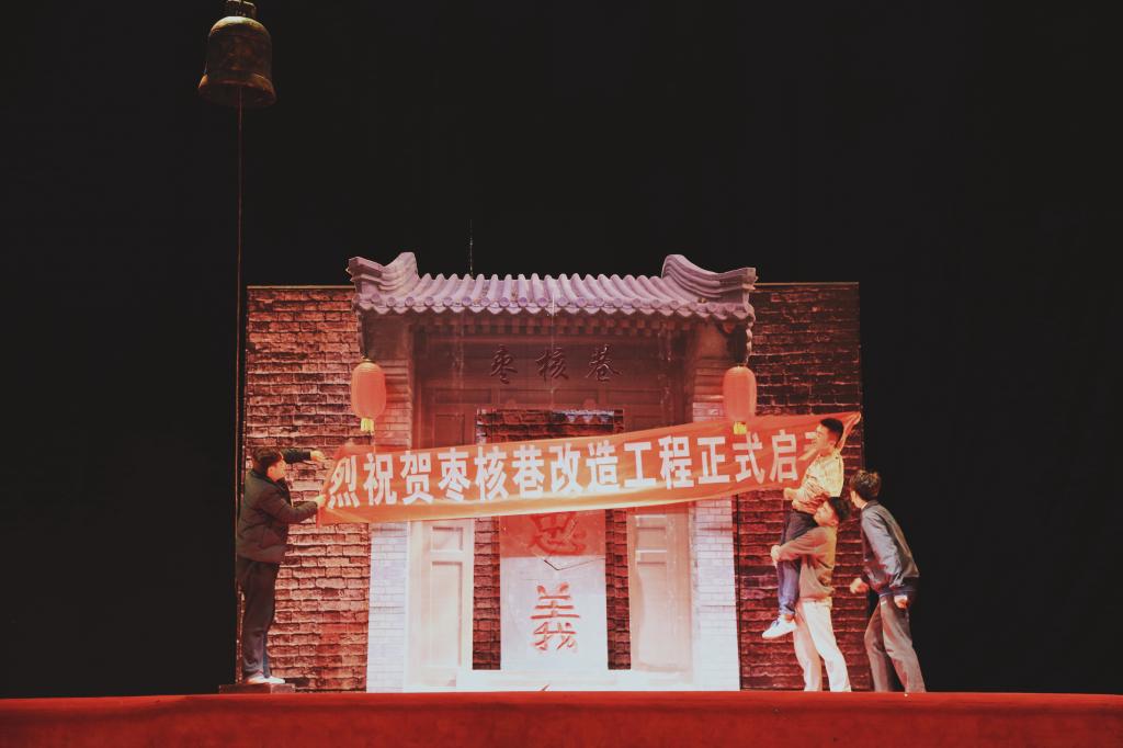 我校話劇作品《棗核巷》由南璐編劇,李俊強(qiáng)、李磊導(dǎo)演,12月4日在文體館進(jìn)行首演。該劇講述了一條有著百余年歷史的小巷,飽經(jīng)滄桑和磨難的發(fā)展歷程。展現(xiàn)了時(shí)代和人的心理情感上的發(fā)展變化。劉薇薇和劉芳芳就是在這樣的背景下成長(zhǎng)起來(lái)的兩個(gè)年輕人,她們倆勤奮好學(xué)、努力上進(jìn),一心想著改變自己和小巷的命運(yùn),卻因?yàn)槊\(yùn)的選擇最終走上了兩條截然不同的道路:劉薇薇與高富帥李鑫喆走在了一起,與原來(lái)的男朋友-小巷里的發(fā)小趙磊分了手,打算畢了業(yè)就和李鑫喆結(jié)婚,去過(guò)富裕的生活;而妹妹劉芳芳卻依然保持著本色,畢業(yè)后當(dāng)了棗核巷地區(qū)的大學(xué)生村官,致力于改造本地的工作,帶動(dòng)大家共同致富。然而造化弄人,李鑫喆欺騙了劉薇薇姐妹倆和棗核巷的眾鄉(xiāng)親,攜棗核巷地區(qū)改造集資款逃跑,給棗核巷造成了巨大的經(jīng)濟(jì)損失。人們不得不紛紛背井離鄉(xiāng),外出打工,只留下劉芳芳和幾位族長(zhǎng)繼續(xù)奔走于改造工作。最后,在政府的關(guān)懷下,棗核巷終于改造成功,被迫在外漂泊的人們又重新回到了故土。