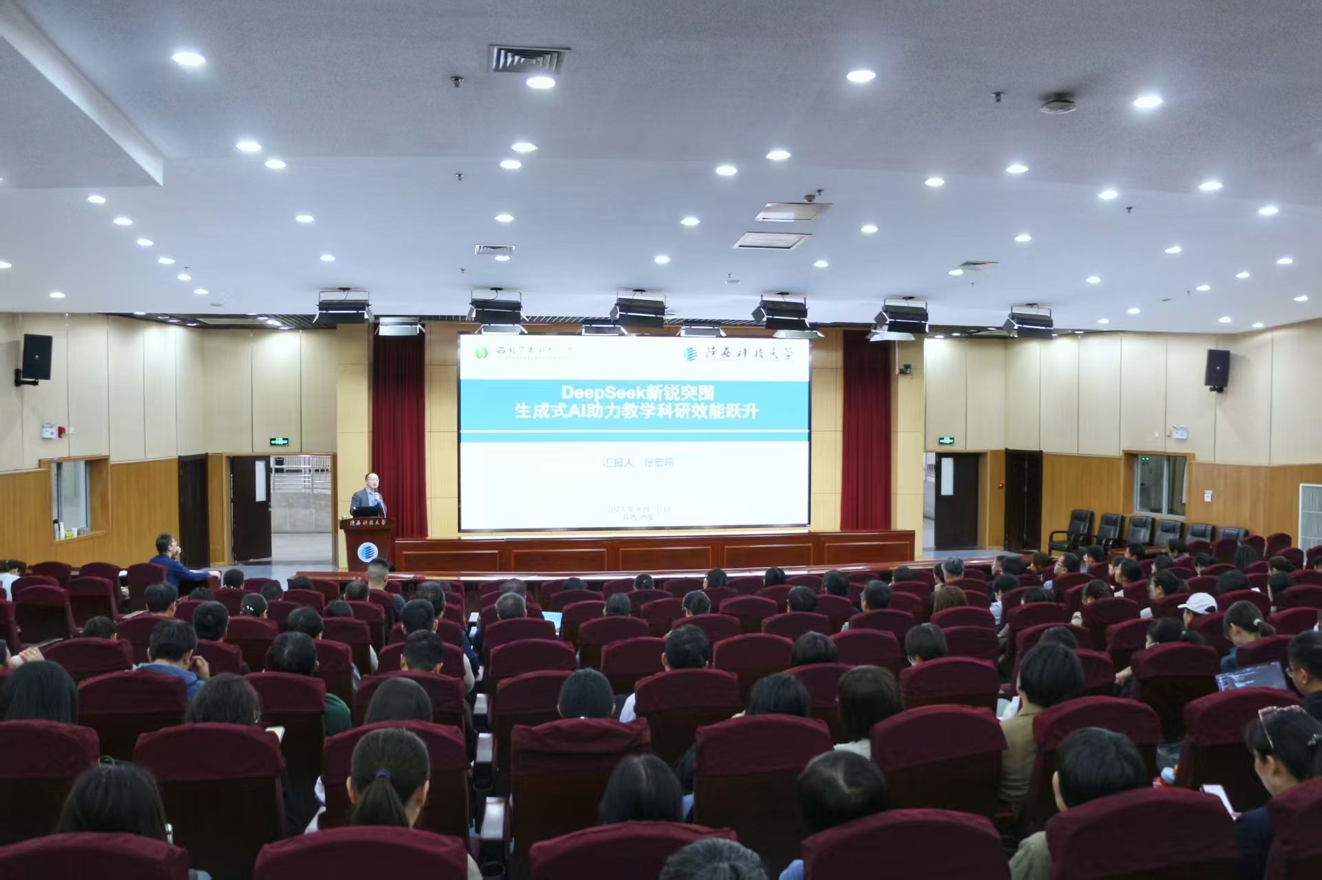 為落實(shí)學(xué)校七屆四次“雙代會(huì)”精神,扎實(shí)推進(jìn)我校2025年工作要點(diǎn),積極探索“人工智能+”教育教學(xué)新模式,提升我校教師教學(xué)科研能力,教師發(fā)展中心“人工智能賦能教育教學(xué)創(chuàng)新”系列專題培訓(xùn)拉開帷幕。首場(chǎng)報(bào)告特邀陜西省教學(xué)名師、西北農(nóng)林科技大學(xué)張宏鳴教授作題為《DeepSeek新銳突圍,生成式AI助力教學(xué)科研效能躍升》的專題報(bào)告。報(bào)告會(huì)由教師發(fā)展中心常務(wù)副主任徐永建主持,我校300余名教師聆聽了此次報(bào)告會(huì)。