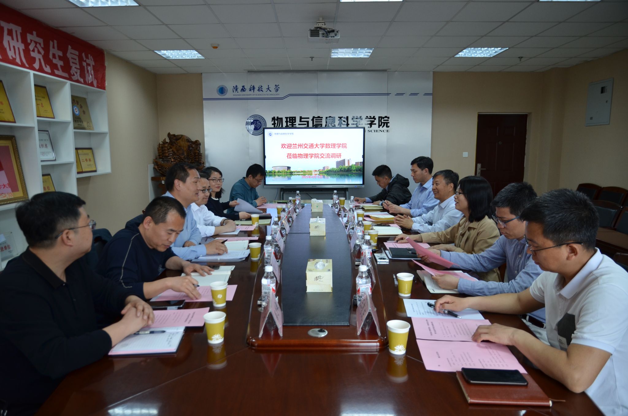 4月15日上午,蘭州交通大學(xué)數(shù)理學(xué)院黨委書記查鵬堂、副院長(zhǎng)梁力、學(xué)科帶頭人魏小平等一行到訪我校,先后前往數(shù)學(xué)學(xué)院和物理學(xué)院開(kāi)展調(diào)研交流活動(dòng)。我校兩個(gè)學(xué)院黨政班子成員、相關(guān)系主任參加座談交流。