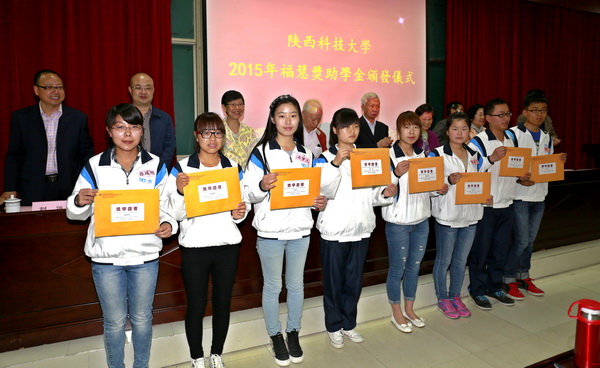 學工部部長劉運宣讀了《陜西科技大學2015年?;鄞壬苹饡坌莫勚鷮W金受助學生名單》,共有86名同學獲得了10萬元的獎助學金。香港?;鄞壬苹饡募钨e和與會領導為受助學生頒發(fā)了證書和獎助學金。