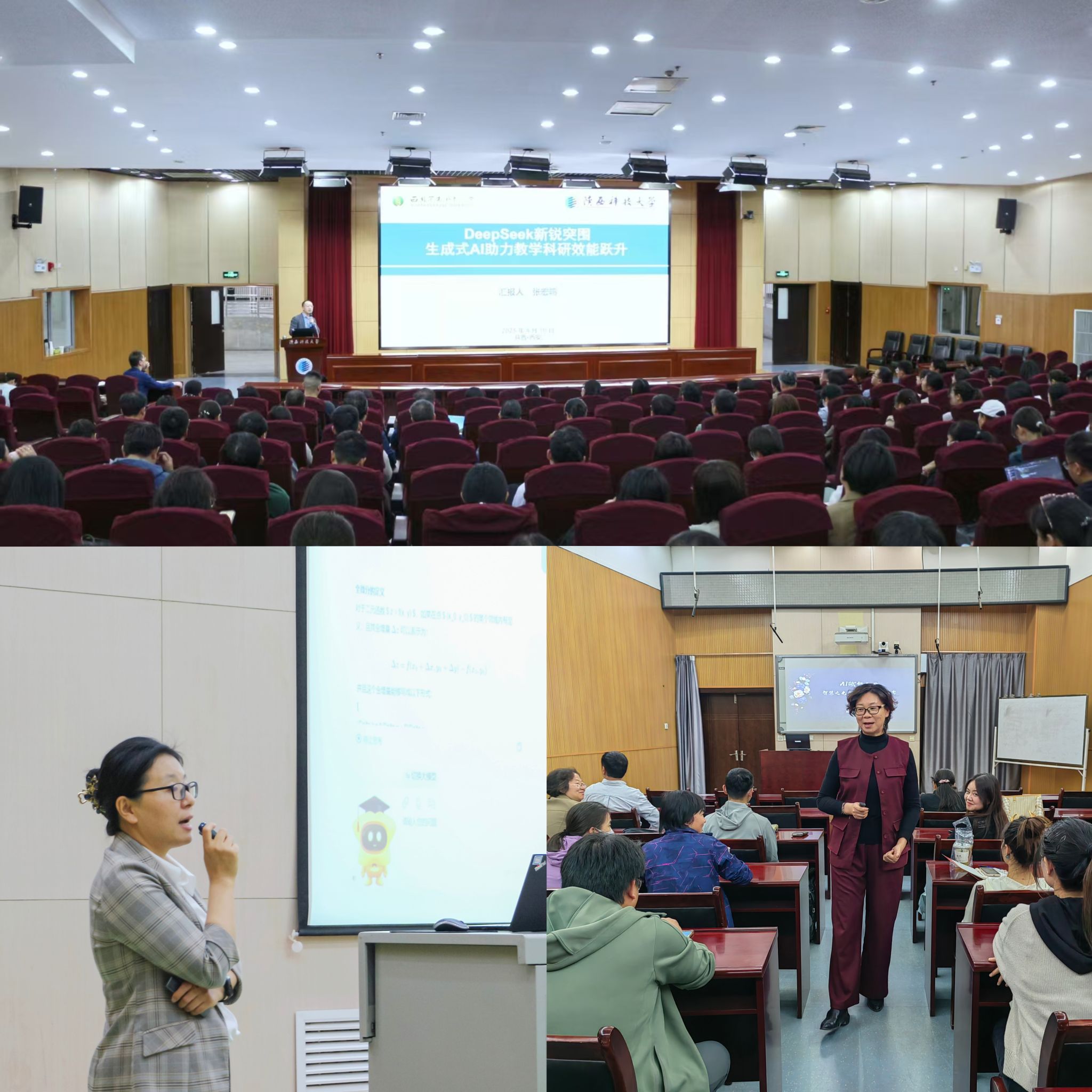 特邀省內(nèi)高校專家學(xué)者為本次系列研修做專題報(bào)告,呈現(xiàn)人工智能與教育教學(xué)融合創(chuàng)新的前沿圖景。西北農(nóng)林科技大學(xué)張宏鳴教授以《DeepSeek新銳突圍:生成式AI助力教學(xué)科研效能躍升》為題,深入剖析了生成式AI在課程設(shè)計(jì)、學(xué)術(shù)研究中的應(yīng)用潛力;通過(guò)豐富案例展示了AI技術(shù)如何全方位賦能高校教師工作。西安交通大學(xué)盧曉云教授在《AI賦能教學(xué):智慧之光與暗仞之殤的博弈》報(bào)告中,辯證探討了AI技術(shù)帶來(lái)的機(jī)遇與挑戰(zhàn),為教師合理運(yùn)用智能工具提出了寶貴建議。西安建筑科技大學(xué)王艷教授來(lái)校作題為《AI賦能新工科課程建設(shè)與教學(xué)改革的創(chuàng)新實(shí)踐——國(guó)家一流課持續(xù)建設(shè)經(jīng)驗(yàn)分享》的專題報(bào)告,從新工科教育理念出發(fā),系統(tǒng)分享了AI技術(shù)驅(qū)動(dòng)課程改革的方法與創(chuàng)新實(shí)踐。三場(chǎng)高水平報(bào)告既有理論高度又具實(shí)踐深度,為參訓(xùn)教師開(kāi)拓了智能教育創(chuàng)新的新視野。