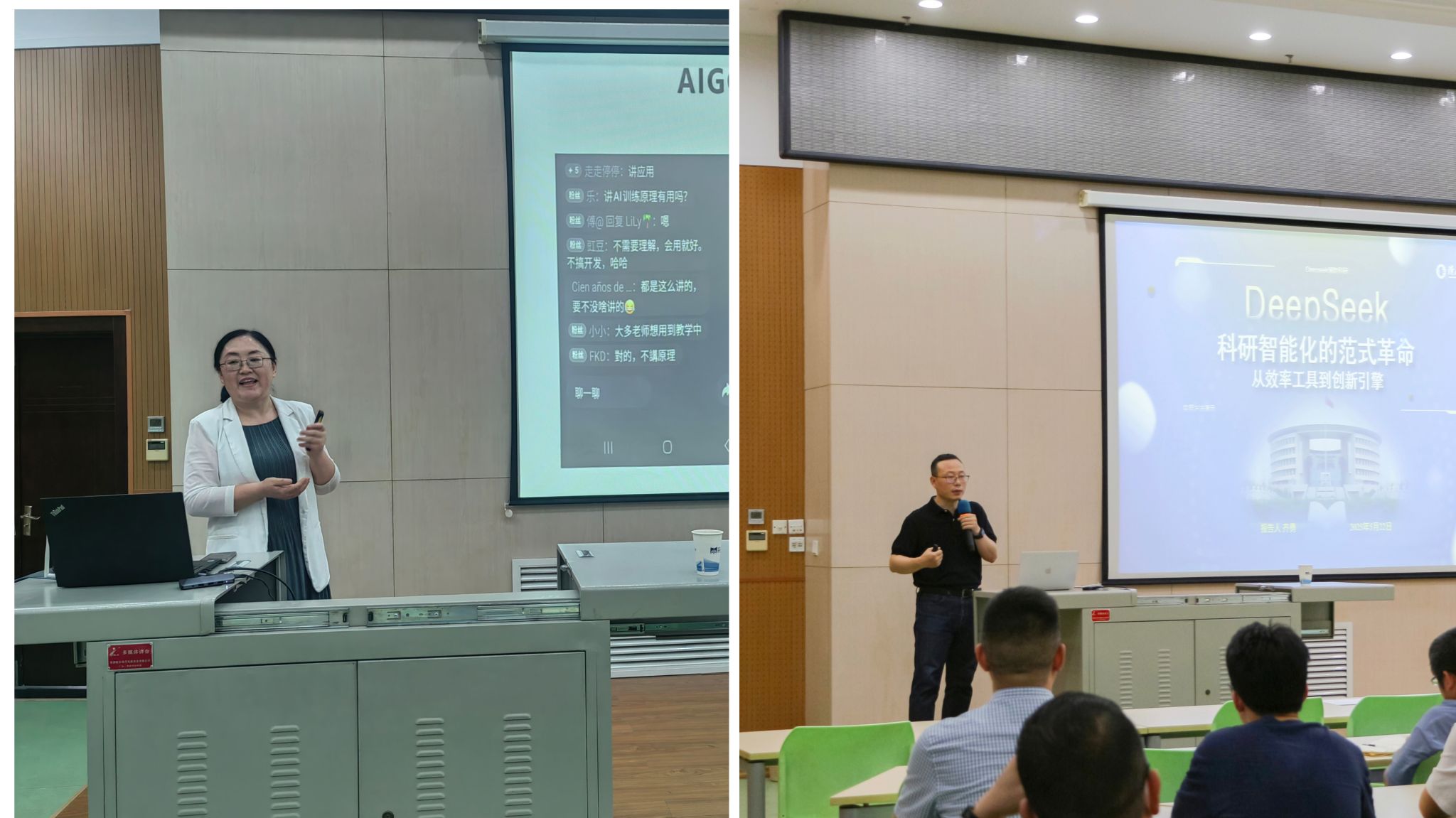 為切實(shí)提升教師智能技術(shù)應(yīng)用能力,中心特別邀請(qǐng)我校電子信息與人工智能學(xué)院付菊、齊勇兩位骨干教師開(kāi)展專題工作坊。付菊老師主講《AI賦能教學(xué)提質(zhì)增效:智能工具在教學(xué)全流程中的應(yīng)用》,系統(tǒng)梳理了智能備課、智慧課堂、精準(zhǔn)評(píng)價(jià)等教學(xué)關(guān)鍵環(huán)節(jié)的AI應(yīng)用策略,通過(guò)教學(xué)案例演示和現(xiàn)場(chǎng)實(shí)操指導(dǎo),幫助參訓(xùn)教師快速掌握智能教學(xué)工具的使用技巧。齊勇老師帶來(lái)的《DeepSeek:科研智能化的范式革命——從效率工具到創(chuàng)新引擎》專題工作坊,則深入探討了AI技術(shù)在文獻(xiàn)智能檢索、科研數(shù)據(jù)分析及學(xué)術(shù)創(chuàng)新突破等方面的創(chuàng)新應(yīng)用,通過(guò)互動(dòng)演示和案例解析,生動(dòng)展現(xiàn)了人工智能如何從效率工具升級(jí)為科研創(chuàng)新的強(qiáng)大引擎。兩場(chǎng)工作坊理論與實(shí)踐并重,現(xiàn)場(chǎng)互動(dòng)熱烈,有效激發(fā)了教師探索智能技術(shù)與教育教學(xué)深度融合的熱情。