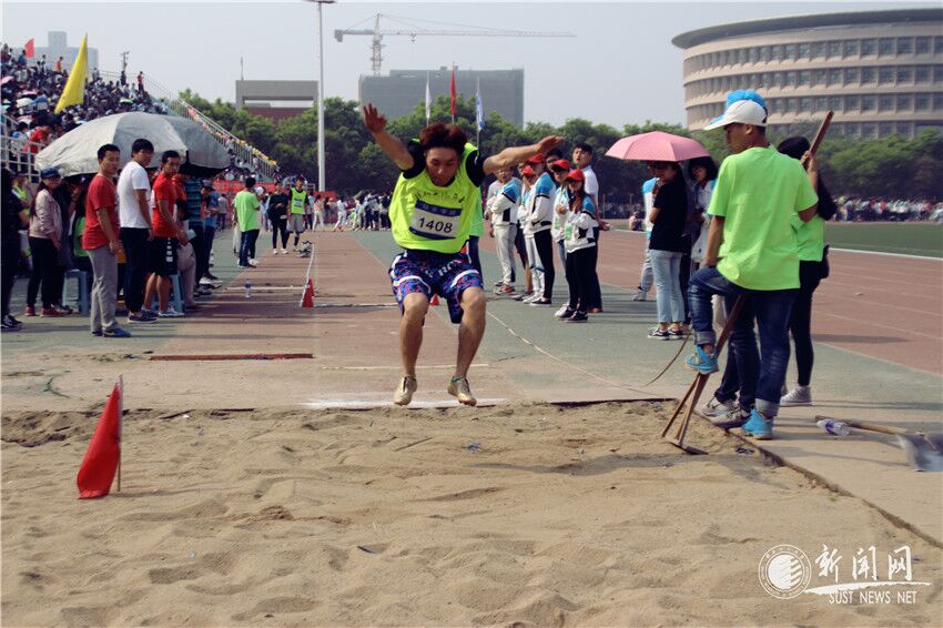 三級(jí)跳遠(yuǎn)大學(xué)生男子組比賽期間,每位選手都奮力跳躍。有的選手表現(xiàn)的相當(dāng)出色,讓在場(chǎng)觀看的同學(xué)禁不住歡呼和鼓掌;有的同學(xué)因?yàn)榘l(fā)力過猛而不幸拉傷肌肉導(dǎo)致不能繼續(xù)比賽,表示相當(dāng)遺憾,但他們那種運(yùn)動(dòng)精神值得欽佩。最終,材料科學(xué)與工程學(xué)院榮獲第一。