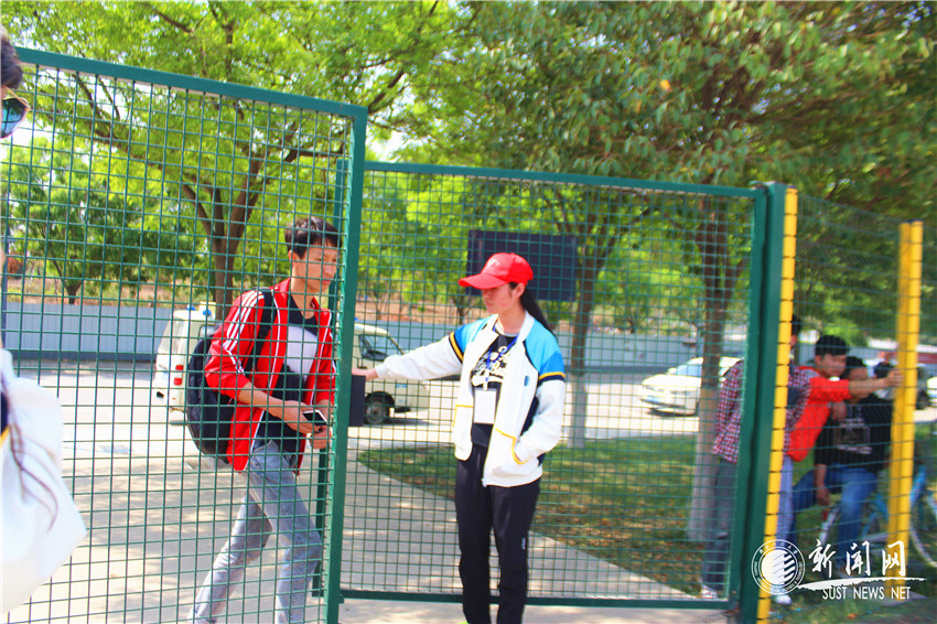 志愿者分為16組,共計(jì)100多人,戴著顯眼的小紅帽,他們主要協(xié)助裁判、參賽成員、賽場(chǎng)秩序搬運(yùn)比賽用的器材、管制賽場(chǎng)流程、幫忙檢錄、恢復(fù)場(chǎng)地等,跑道上的志愿者還要為運(yùn)動(dòng)員們驅(qū)散跑道上的人員。在標(biāo)準(zhǔn)田徑場(chǎng)的南門默默站立著一位小姑娘,她的責(zé)任就是為同學(xué)開關(guān)門??此菩⌒〉呐e動(dòng),但在烈日炎炎下,能堅(jiān)持下來的,也只有像她一樣的志愿者了吧。