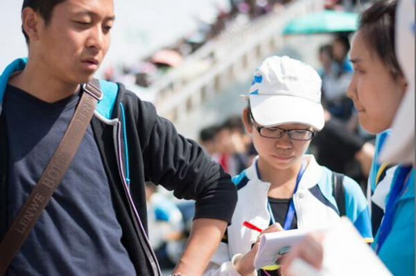 這130名“小紅帽”很活躍,在比賽開始前,他們幫助搬動器材;在跑道旁邊,他們協(xié)助維持賽場秩序;比賽結(jié)束后,他們會給疲憊的運動員提供照顧。