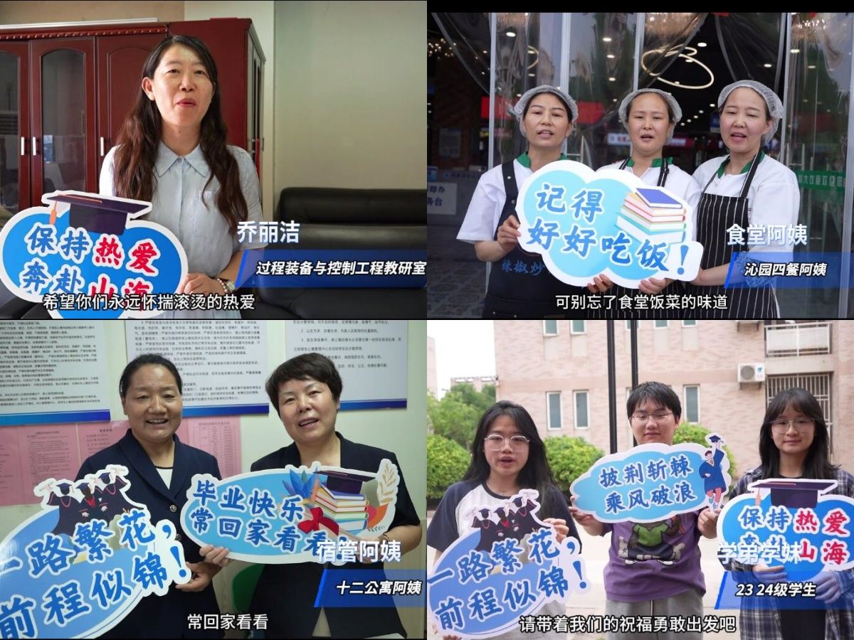 青春相伴憶芳華,畢業(yè)啟航送祝福。當蟬鳴攀上盛夏,又是鳳凰花開的季節(jié)。學院網(wǎng)絡(luò)文化中心用鏡頭記錄教研室老師、學弟學妹、食堂阿姨、宿管阿姨、保安叔叔對畢業(yè)生的深深祝福。有青春相伴的珍貴回憶,有前程似錦的真摯祝福,有“好好吃飯,天冷加衣”的暖心叮嚀,更有“畢業(yè)快樂,一路順風”的溫情祝福與囑托。希望畢業(yè)生們帶著這些溫暖與力量觸碰山間的紋理,激蕩熱愛和勇氣,在自洽的氛圍里盡情肆意。