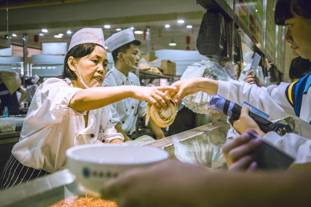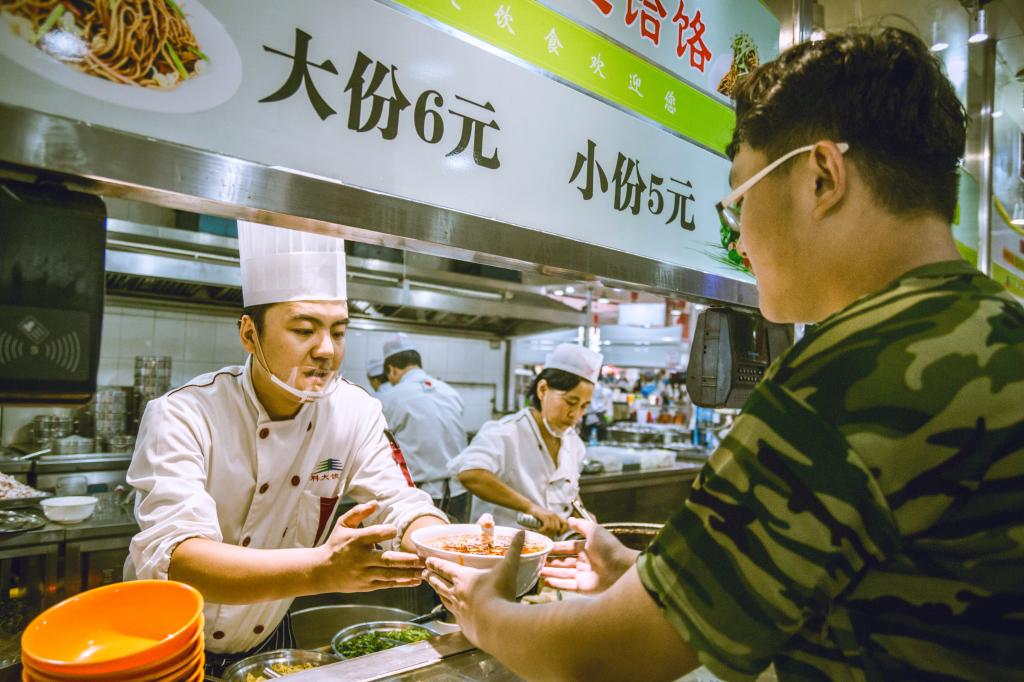 一大清早,來到食堂。一些新生正在井井有序地購買早餐。軍訓的強度大,如果早飯不吃好的話肯定是沒有辦法好好訓練的。
