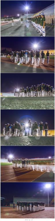 晚上,訓練強度降低,教官讓大家再次強化下白天的動作,明亮的的燈光下,大家一遍遍的走隊列,看齊每一排每一縱隊的線條,為最后的匯演做著準備。