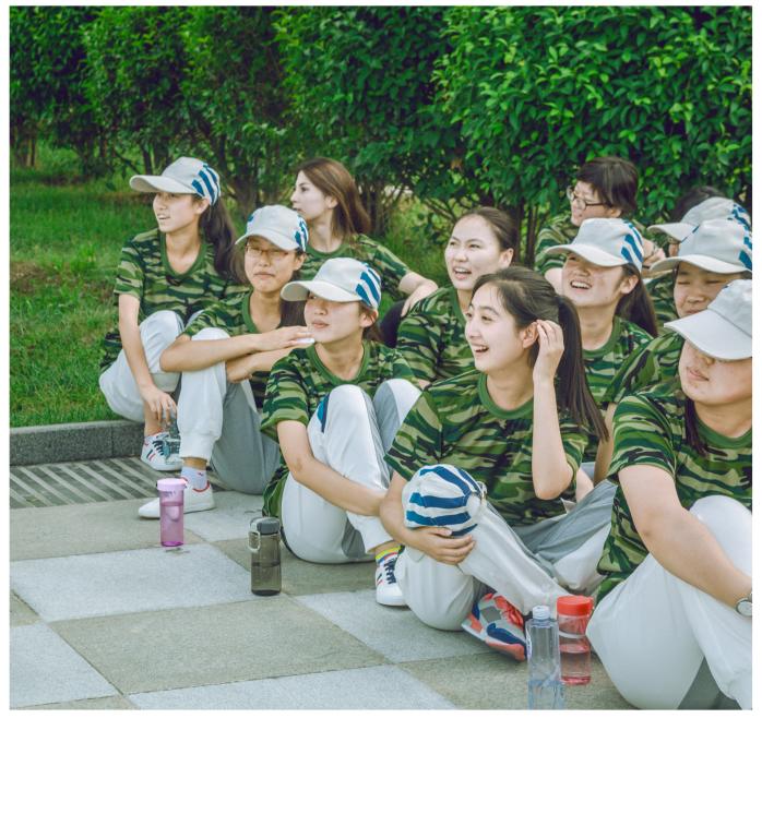 軍訓也不都是疲勞和汗水,休息的時候大家也是有說有笑分享自己訓練時候的趣事,或者集體要求某個同學和教官來表演節(jié)目。