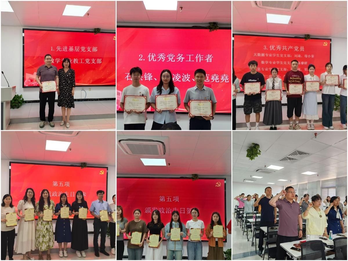 為慶祝中國共產(chǎn)黨成立104周年,表彰先進、弘揚正氣,激勵廣大黨員踔厲奮發(fā)、勇毅前行,數(shù)學(xué)與數(shù)據(jù)科學(xué)學(xué)院黨委于6月27日下午在教四A407報告廳舉行慶祝中國共產(chǎn)黨成立104周年暨“七一”表彰大會。數(shù)學(xué)學(xué)院全體師生黨員參會,會議由學(xué)院黨委副書記宋沛主持。
