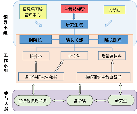 成 員:研究生院培養(yǎng)科、學(xué)位科、質(zhì)量監(jiān)控科,信息與網(wǎng)絡(luò)管理中心應(yīng)用技術(shù)部,各學(xué)院研究生秘書,校級研究生教育督導(dǎo)