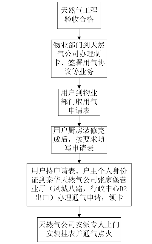 三、本次天然氣工程根據(jù)天然氣公司規(guī)定采用分戶驗收、分戶掛表模式(后附流程圖),若因住戶未按規(guī)定裝修(見2020年9月24日《關(guān)于住宅樓裝修期間天然氣設(shè)施保護(hù)的通知》),影響天然氣管道施工和驗收,對驗收通氣產(chǎn)生影響,責(zé)任由住戶承擔(dān)。