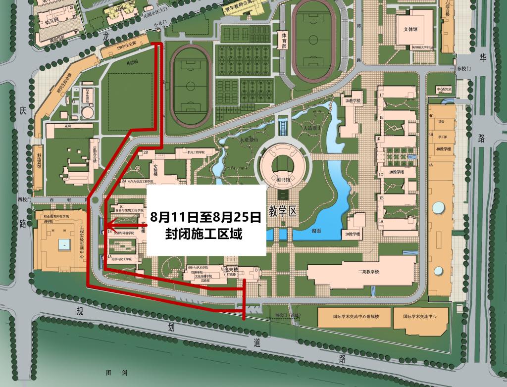 我校教學(xué)區(qū)環(huán)道維修改造工程正在緊張有序進行,為保證施工質(zhì)量、安全,確保工程按期完工,同時盡可能減小對教學(xué)區(qū)內(nèi)車輛通行的影響,故根據(jù)工程進度,現(xiàn)將8月11日至8月25日封閉施工的區(qū)域公布如下: