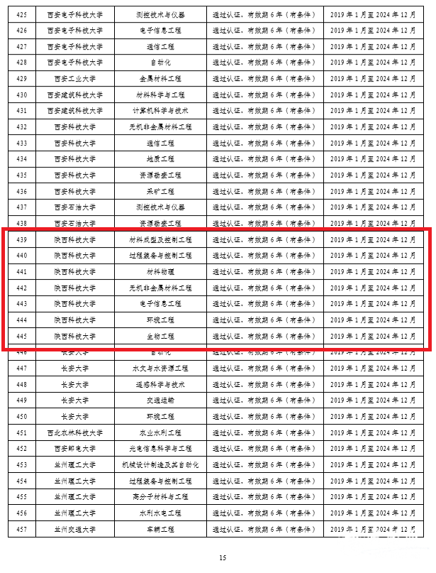 開創(chuàng)一流本科教育新局面:6月,教育部高等教育教學(xué)評估中心和中國工程教育專業(yè)認(rèn)證協(xié)會公布了2018年參加全國工程教育專業(yè)認(rèn)證的認(rèn)證結(jié)論,學(xué)校材料成型及控制工程等7個專業(yè)順利通過,位居陜西高校第一。截至2019年底,學(xué)校工程教育專業(yè)認(rèn)證正式通過、完成進(jìn)??疾椤M進(jìn)??疾?、新受理專業(yè)數(shù)合計18個,位列陜西高校第三,全國輕工類高校第一名。