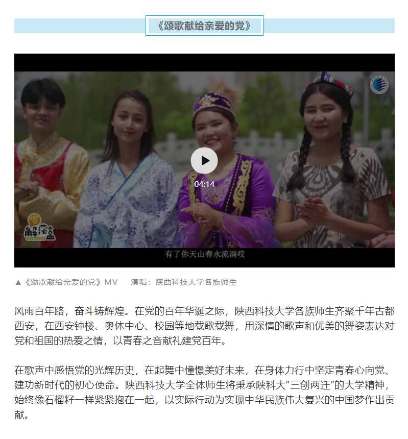 國家民委、三秦統(tǒng)戰(zhàn)、中國民族報等多家官方媒體轉(zhuǎn)載我校慶?!敖h百年”作品《頌歌獻給親愛的黨》